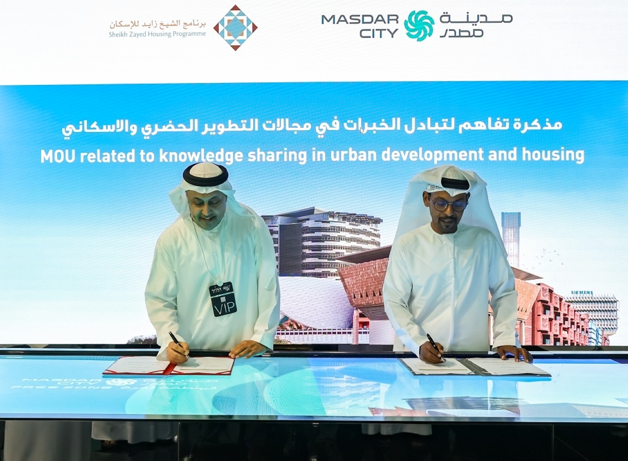وقّعت وزارة الطاقة والبنية التحتية، ممثلة في برنامج الشيخ زايد للإسكان، مذكرة تفاهم مع مدينة مصدر، لتطوير الشراكات الاستراتيجية بشأن تبادل الخبرات المعرفية والبيانات والمشاركة في الفعاليات ذات الصلة بالمشاريع الإسكانية والخدمات المجتمعية، في إطار ترسيخ مكانة الإمارات في المحافل الإقليمية والدولية، وتعزيز مؤشراتها التنافسية في الإسكان والتنمية الحضرية،