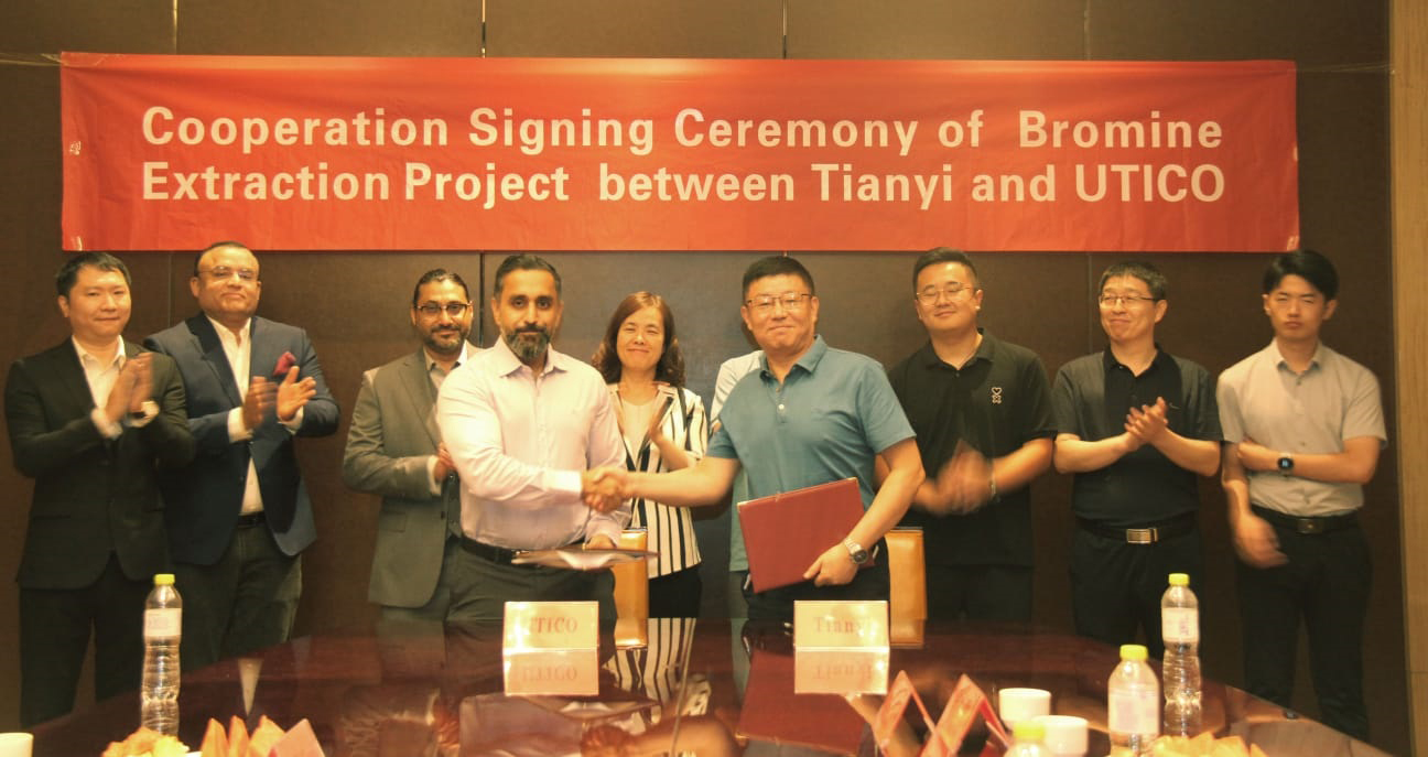 تبحث شركة «يوتيكو» وشركة «شاندونغ تيانيي» للكيماويات في الصين، عن الدخول في شراكة لتنفيذ مشروع مشترك رائد في مجال الاقتصاد الدائري لاستخراج المواد الكيميائية الصناعية من نفايات مياه البحر، والذي يعد المشروع الأول من نوعه في منطقة الخليج لإعادة تدوير مياه البحر الناتجة عن محطات تحلية المياه.