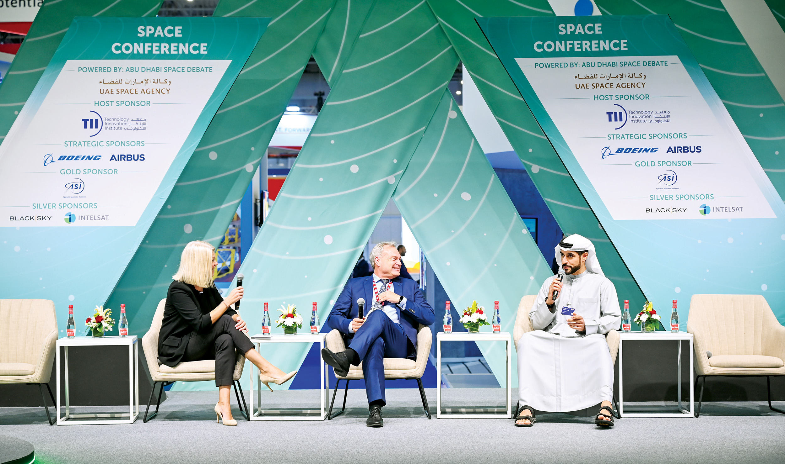 وتضمن المؤتمر 20 جلسة حوارية ونقاشية، سلطت الضوء على صناعة الفضاء والطيران، بمشاركة 55 متحدثاً، يمثلون 20 دولة حول العالم، إضافة إلى 10 وكالات فضاء دولية، بما في ذلك وكالة الفضاء الأوروبية ووكالة الفضاء الإيطالية ووكالة الفضاء المكسيكية وغيرها، إلى جانب حضور رؤساء 6 وكالات فضاء عالمية ومن بينهم سالم بطي القبيسي، المدير العام لوكالة الإمارات للفضاء.