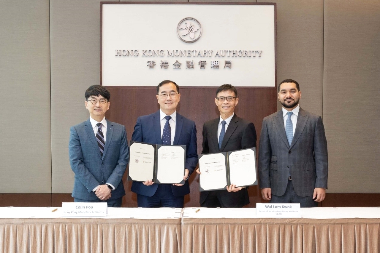 وقع المذكرة كولين بو، المدير التنفيذي (البنية التحتية المالية) لدى سلطة النقد بهونج كونج، وواي لوم كووك، المدير التنفيذي للترخيص والتكنولوجيا المالية في سلطة تنظيم الخدمات المالية بسوق أبوظبي العالمي.