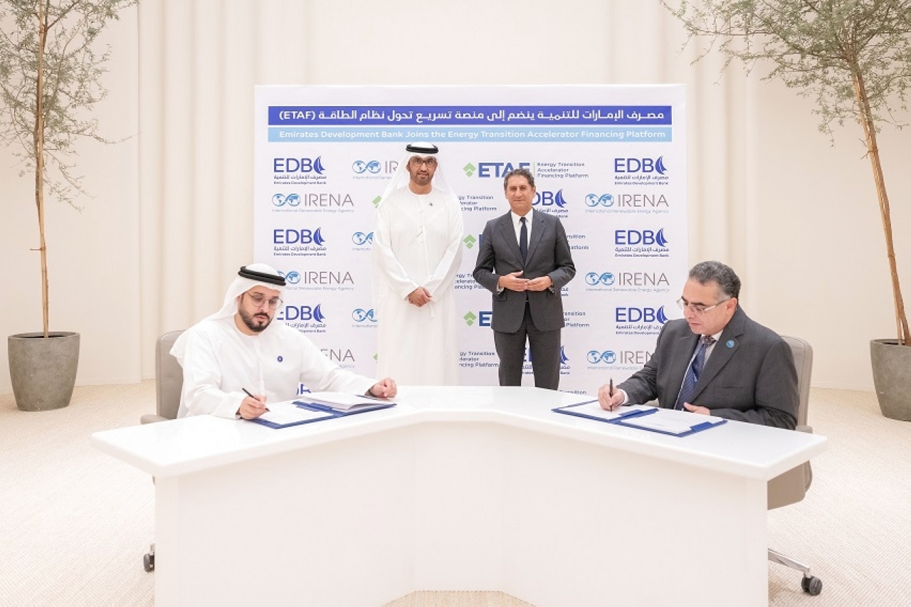 أعلن مصرف الإمارات للتنمية، المحرّك المالي الرئيس لأجندة التنويع الاقتصادي والتحول الصناعي في دولة الإمارات، التزامه بتقديم 1.3 مليار درهم (350 مليون دولار) لدعم منصة تسريع تحول نظام الطاقة «إيتاف»، منصة التمويل العالمية المعنية بالمناخ، التي أطلقتها الوكالة الدولية للطاقة المتجددة «آيرينا»، وذلك ضمن جهود توسيع نطاق تمويل مشاريع الطاقة المتجددة، وتحفيز جمع الأموال لتمويل مشاريع الطاقة المتجددة في الدول النامية.