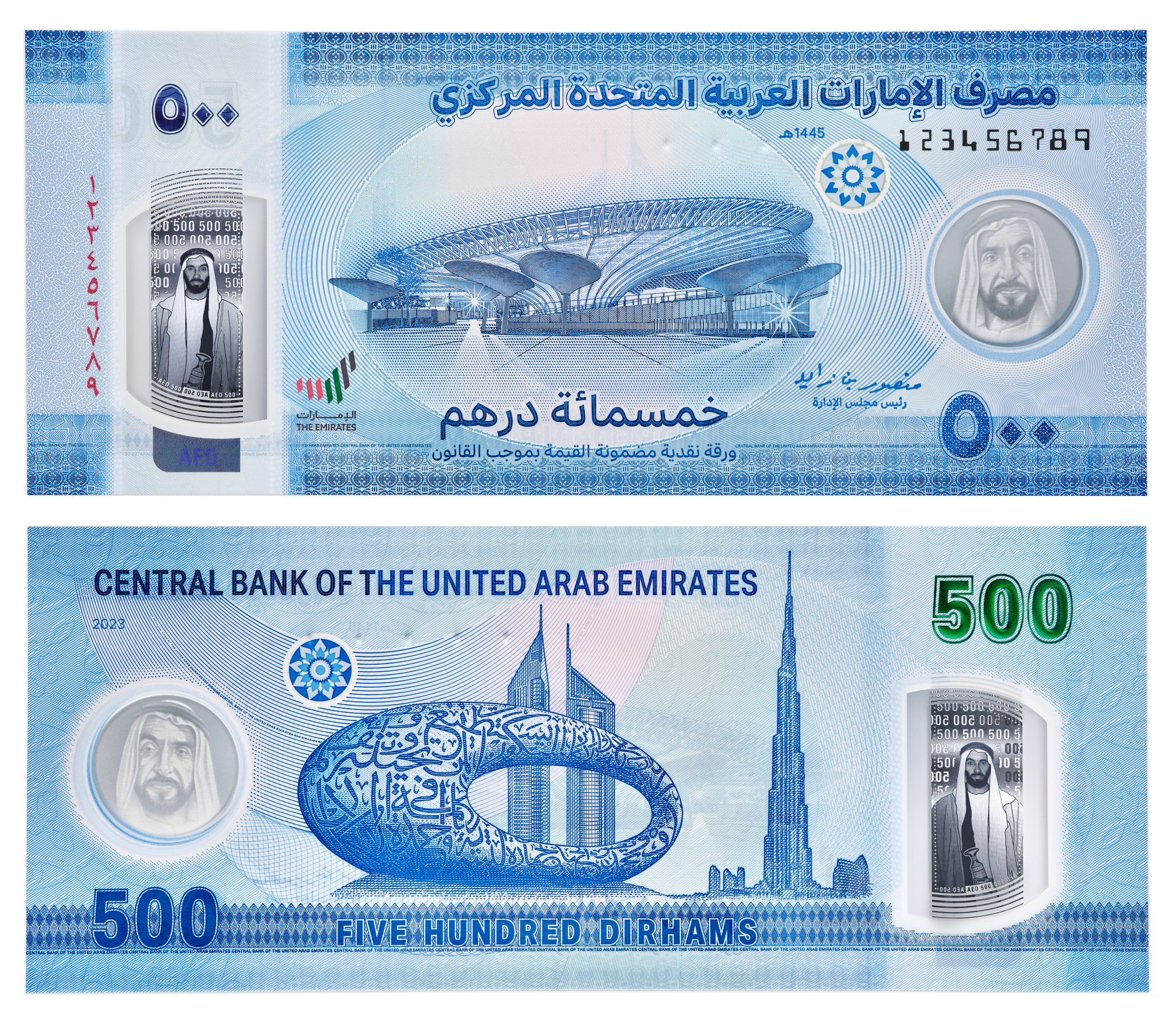 تماشياً مع رؤية القيادة الرشيدة، وتجسيد الدور الريادي الدولي لدولة الإمارات في العمل المناخي والمستقبل المستدام، والتي توّجت باستضافتها لمؤتمر الأطراف (كوب 28)، وتزامناً مع احتفالات الدولة بعيد الاتحاد الثاني والخمسين، أعلن مصرف الإمارات العربية المتحدة المركزي عن إصدار ورقة نقدية جديدة من فئة الـ 500 درهم مصنوعة من مادة البوليمر، ضمن مشروع الإصدار الثالث للعملة الوطنية، بتصاميم مميزة وخصائص أمنية متطورة.