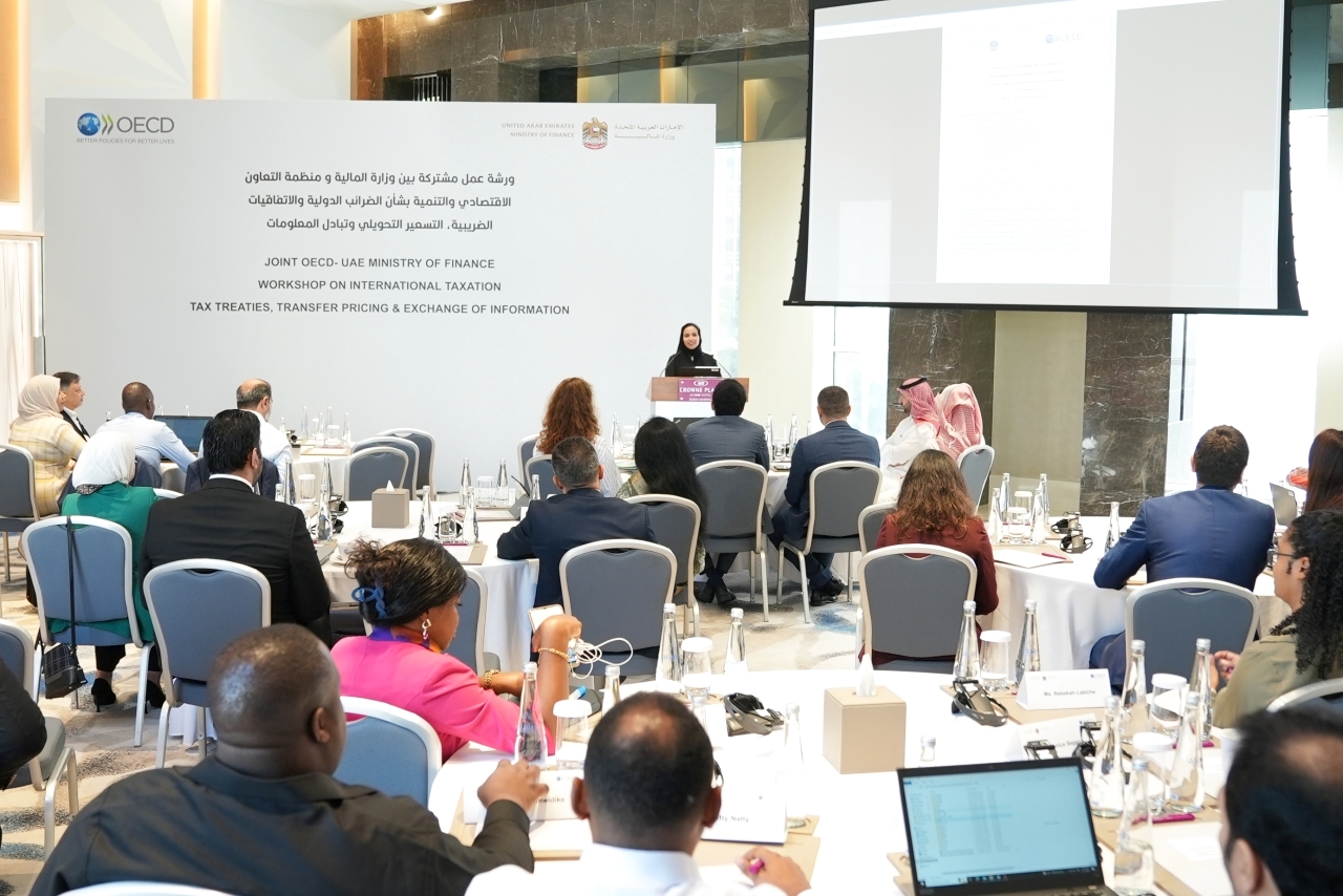 نظمت وزارة المالية ورشة عمل مع «منظمة التعاون الاقتصادي والتنمية»، حول الضرائب الدولية والمعاهدات الضريبية والتسعير التحويلي وتبادل المعلومات، بمشاركة من جهات اتحادية، وهي: مصرف الإمارات العربية المتحدة المركزي، وهيئة الأوراق المالية والسلع، والهيئة الاتحادية للضرائب، كما شاركت فيها المناطق الحرة المالية، وهي مركز دبي المالي العالمي، وسوق أبوظبي العالمي، وبمشاركة خبراء في مجال الضرائب والمعاهدات الضريبية من مختلف أنحاء العالم.