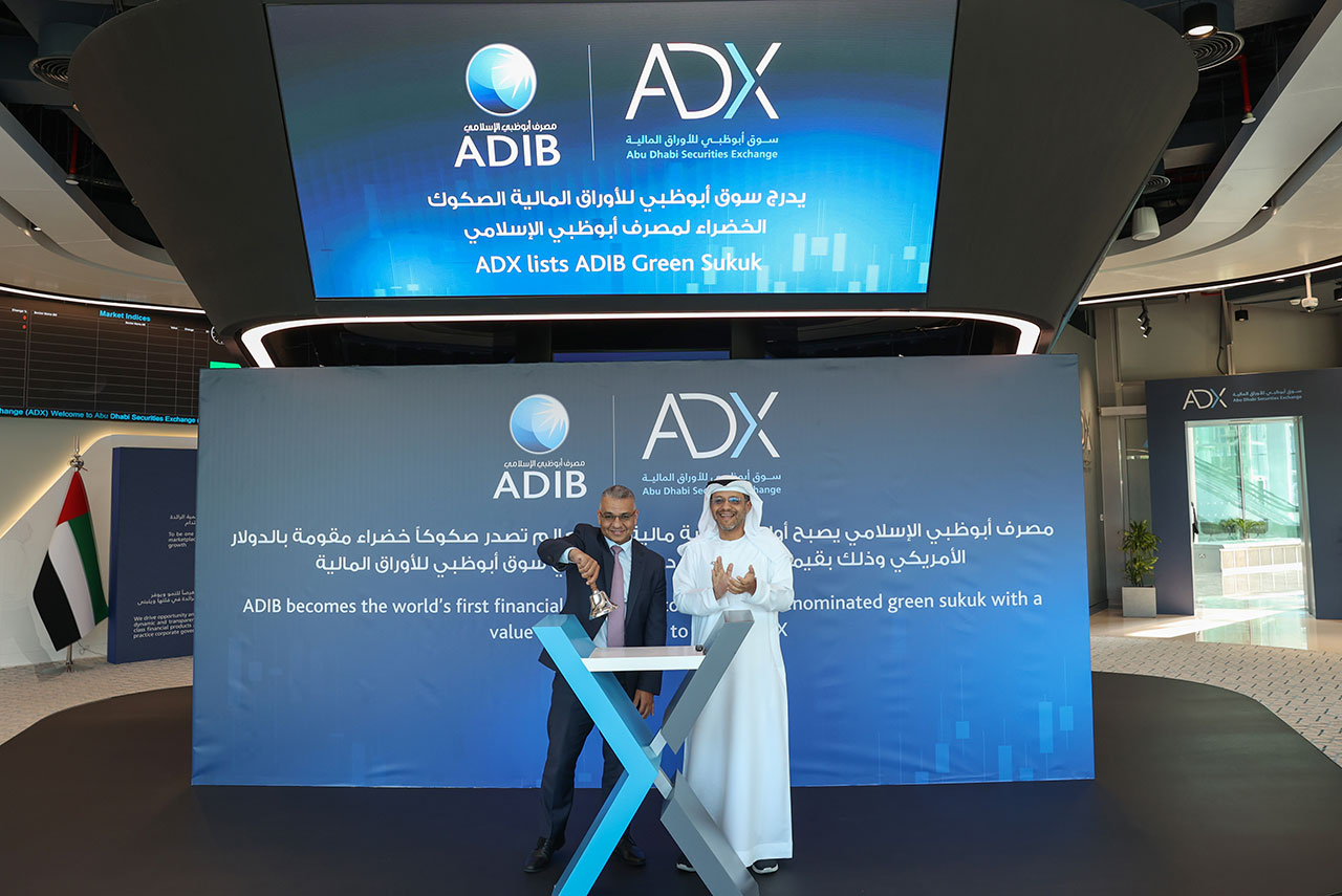 رحّب سوق أبوظبي للأوراق المالية بإدراج مصرف أبوظبي الإسلامي إدراج أول صكوك خضراء في العالم مقومة بالدولار في سوق أبوظبي، وشارك فريق الادارة التنفيذية في مصرف ابوظبي الإسلامي في مراسم قرع جرس افتتاح جلسات التداول في سوق أبوظبي للأوراق المالية بحضور عبدالله سالم النعيمي، الرئيس التنفيذي لسوق أبوظبي للأوراق المالية.