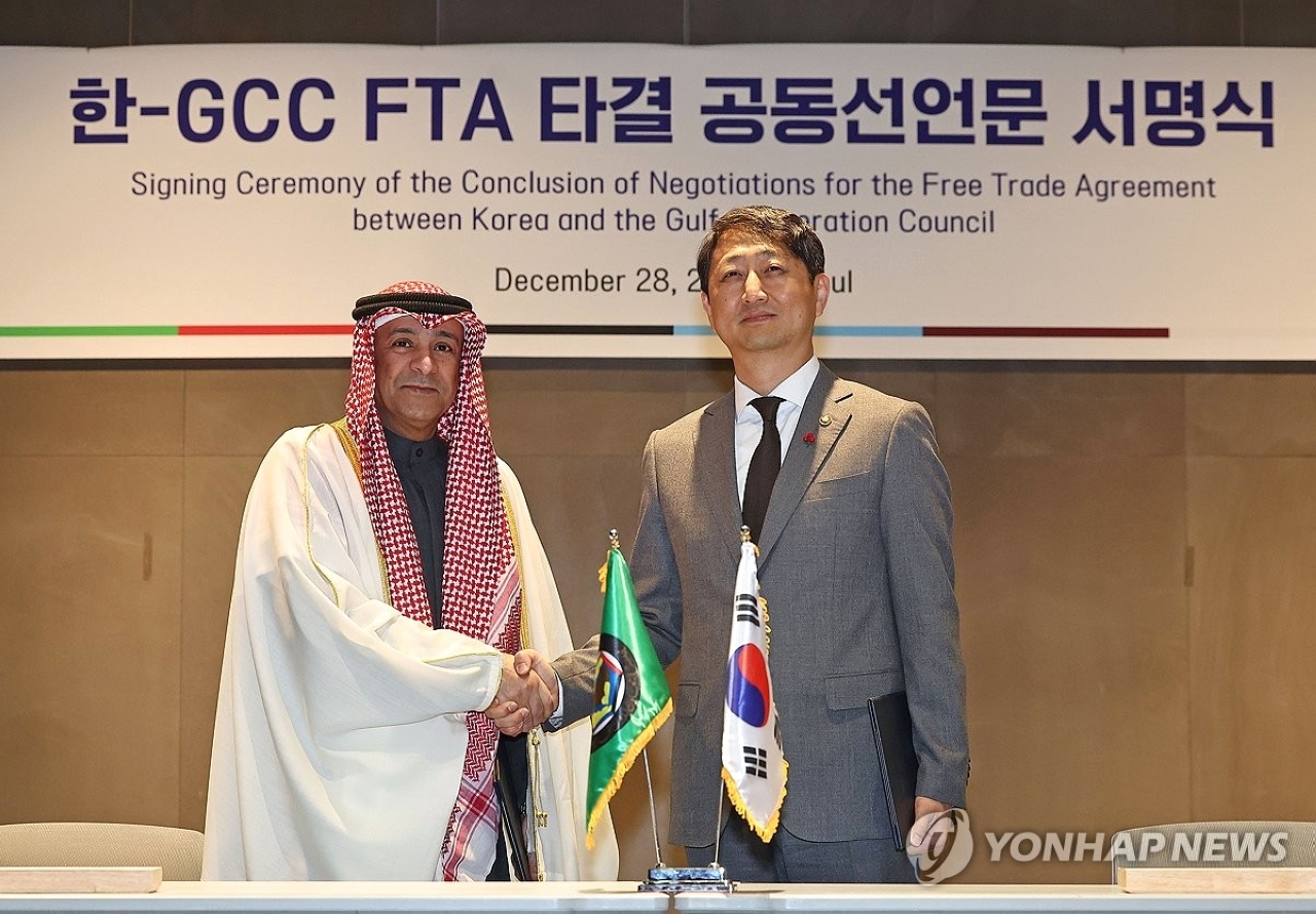 من جانبها، قالت وزارة التجارة والصناعة والطاقة في كوريا الجنوبية، إن وزير التجارة الكوري الجنوبي آن دوك-غيون، وجاسم محمد البديوي الأمين العام لمجلس التعاون لدول الخليج العربية (GCC)، وقعا إعلاناً مشتركاً بشأن إبرام اتفاقية التجارة الحرة الثنائية مؤخراً في سيئول.