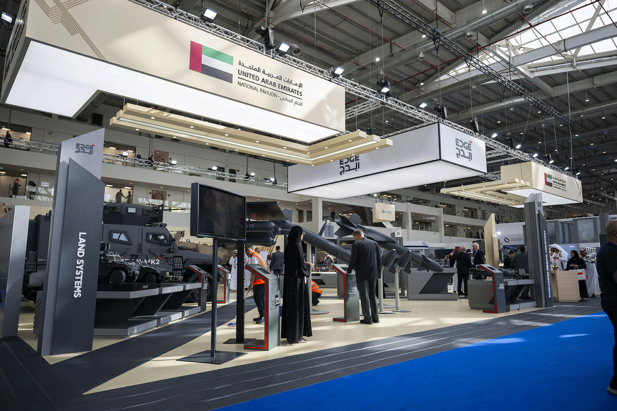 من جهتها تستعرض”إيدج“ إحدى مجموعات التكنولوجيا والدفاع المتقدمة والرائدة والأسرع نمواً في العالم، القدرات التصنيعية التي تمتلكها في مختلف قطاعات الصناعة الدفاعية وتكشف المجموعة من خلال 17 شركة تابعة لها ما يزيد عن 50 من المنتجات والحلول الدفاعية المتقدمة التي تحمل علامة “صنع في الإمارات” في مجال الأنظمة الجوية والبرية والبحرية منها الأسلحة ذات الأداء العالي والذخائر الموجهة بدقة، والأسلحة الصغيرة والذخيرة والأنظمة المستقلة، بالإضافة إلى عرض خدماتها في مجال التطوير التكنولوجي للصناعات الدفاعية والأمنية وحلول الحرب الإلكترونية.