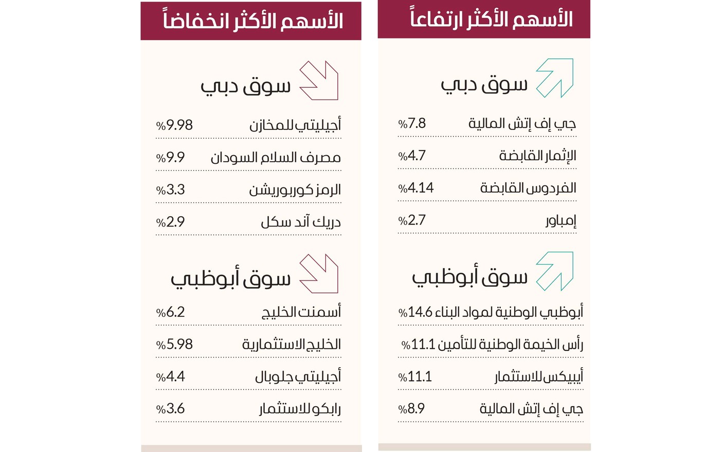 الأسهم الأكثر ارتفاعاً
