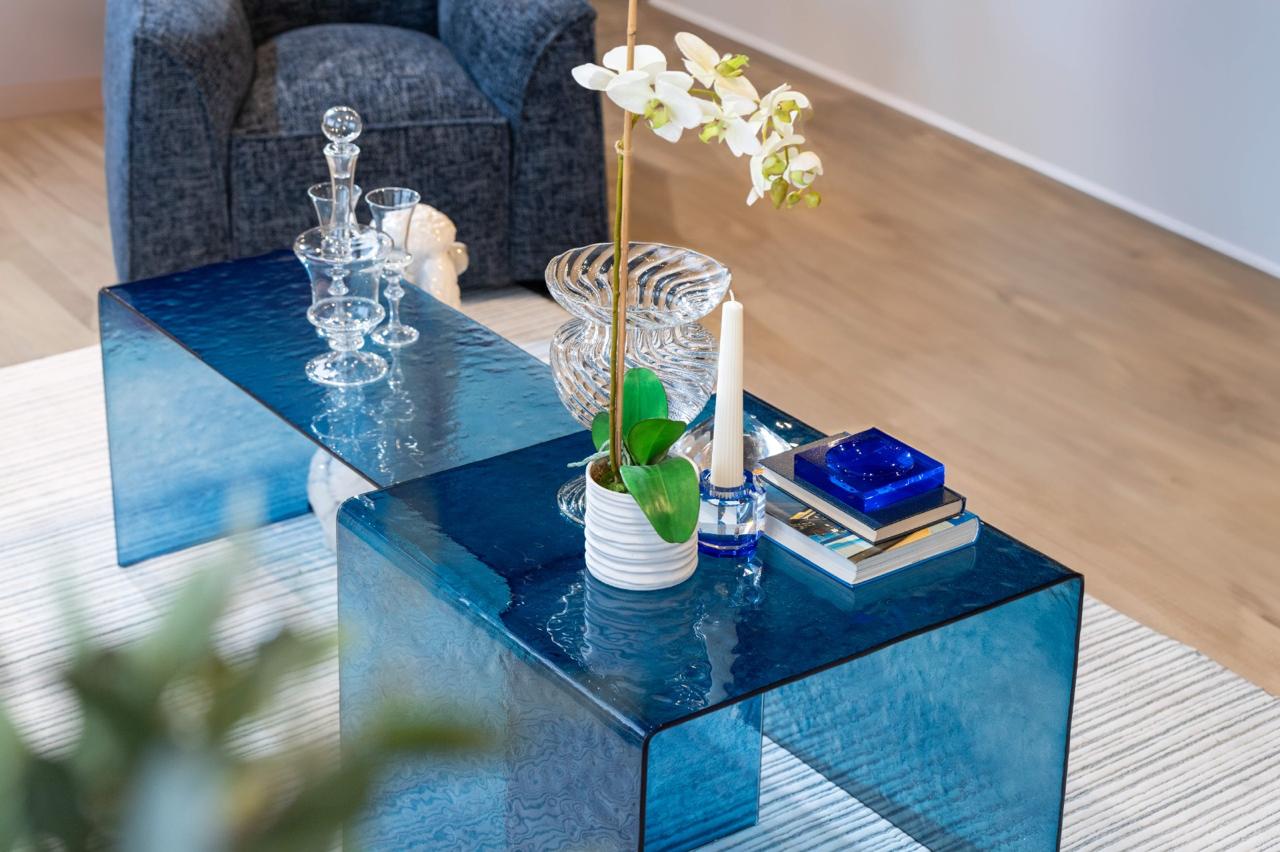 تنفرد هذه التشكيلة الجديدة بأنها ترتقي بالمنتجات والأعمال الزجاجية الحِرفية إلى مستوىً أعلى، بما يرضي محبّي هذا النوع من قطع الأثاث والأكسسوارات، من خلال طاولات الطعام وطاولات القهوة وطاولات الكونسول والمرايا وغيرها.