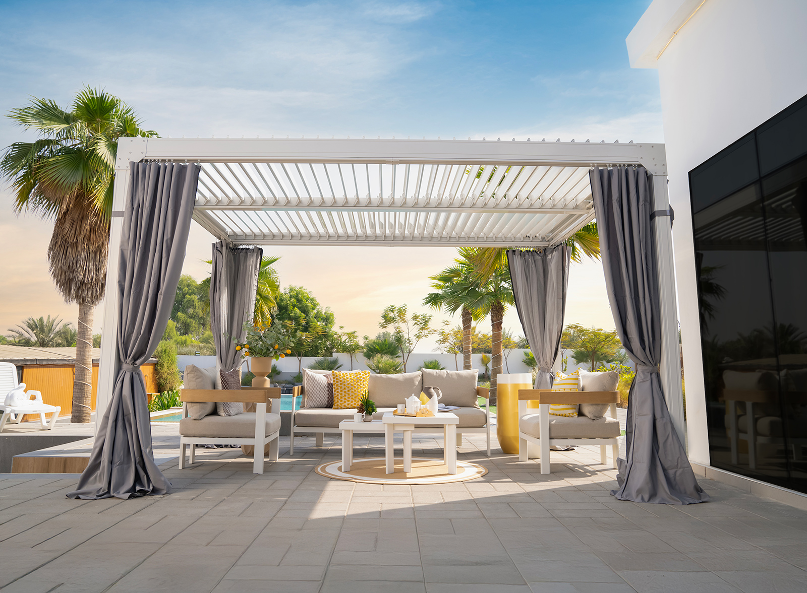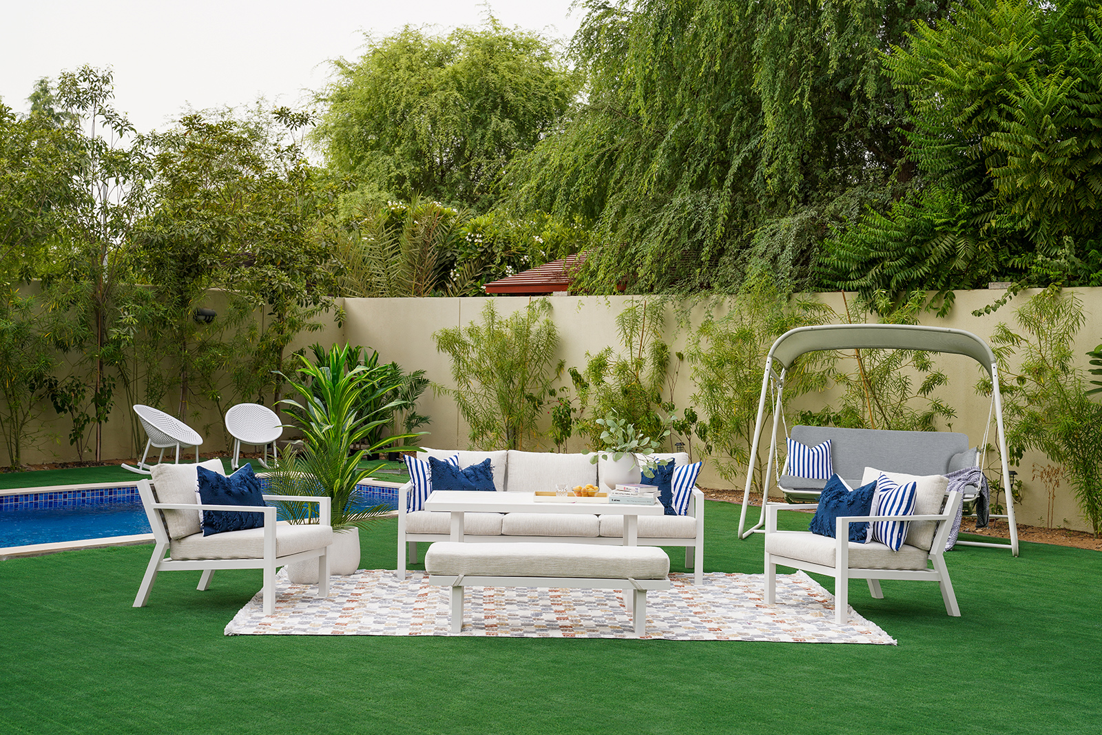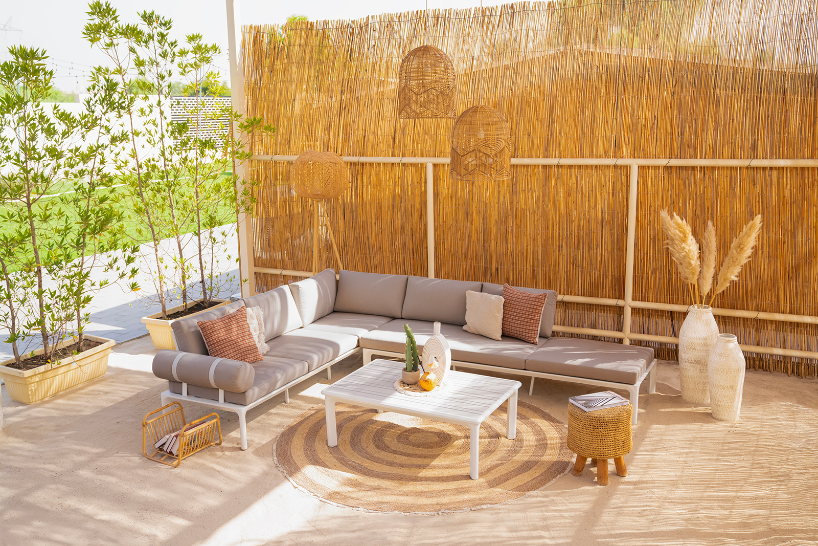 تعتبر النباتات الصناعية من أبرز مميزات المجموعة، حيث تم تصميمها لتحمل حتى المناخ القاسي في الشرق الأوسط، مما يضمن الحد الأدنى من الصيانة وجمالاً يدوم طويلاً. تم تصنيع هذه المنتجات من مواد عالية الجودة لتتحمل الظروف الجوية الصعبة، مما يجعلها مثالية لكل من التجمعات والاسترخاء الهادئ.