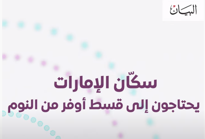 سكان الإمارات يحتاجون إلى قسط اوفر من النوم دبي - طيب قدور حسب استطلاع "البيان" فإن 63% من المستطلعة آراؤهم من سكان الإمارات ينامون أقل من 7 ساعات بينما توصي تقارير علمية بضرورة النوم بين 7 إلى 8 ساعات يوميا.