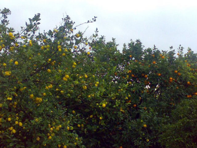 ولكثرة بساتين البرتقال والتين والرمان والزيتون بصورة خاصة تبدو المدينة زمردية اللون محاطة بعقود من الحدائق والبساتين وبجبال خضراء داكنة متوجة بشجر الأرز والصبير وزهر عود السند. ومن الارتفاعات العالية يبدو اللون الأخضر هو الغالب على كل الألوان بينما تتخلله نقاط بيضاء ما هي إلا الخراف والماعز والأبقار التي تنتشر في المراعي.