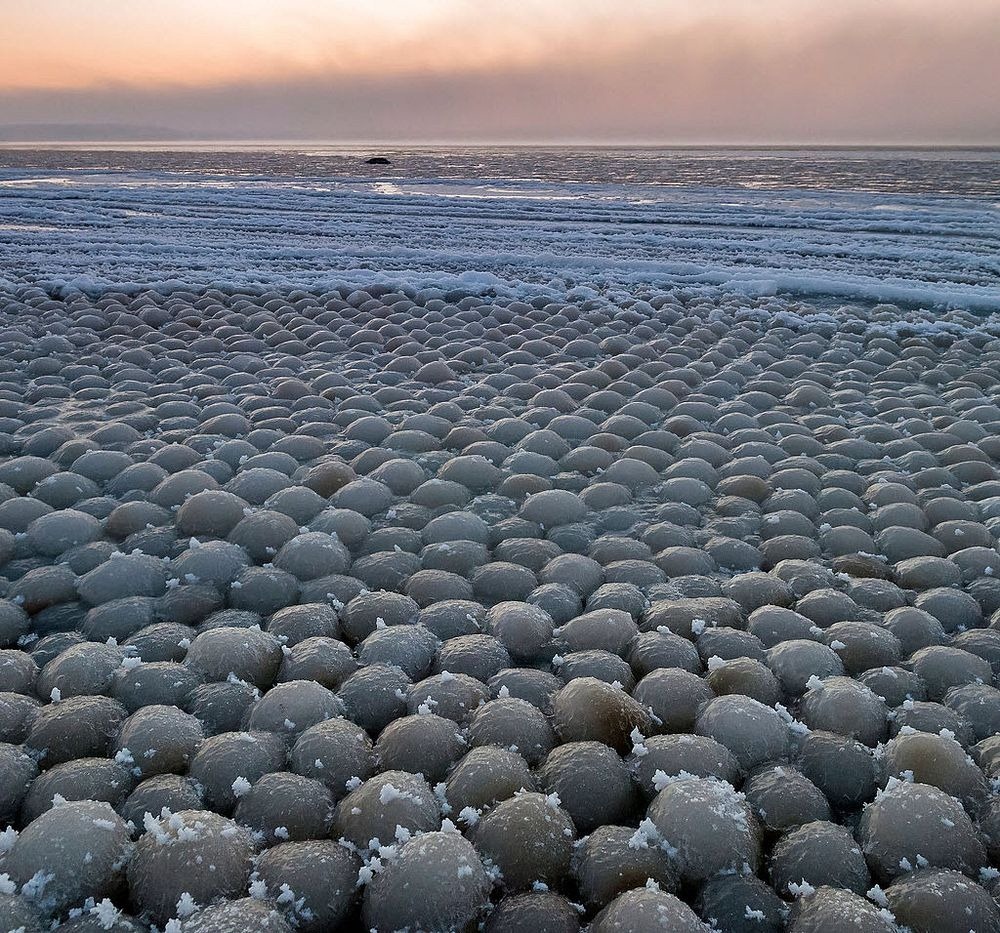في كل شتاء، تشهد ضفاف بحيرة ميشيغان في الولايات المتحدة الأميركية، وكذلك شاطئ سترومي في شمال تالين، استونيا، ظاهرة طبيعية غريبة، إذ تتكون المئات من كريات الثلج المجمدة لتغطي مساحات واسعة من الشواطئ.