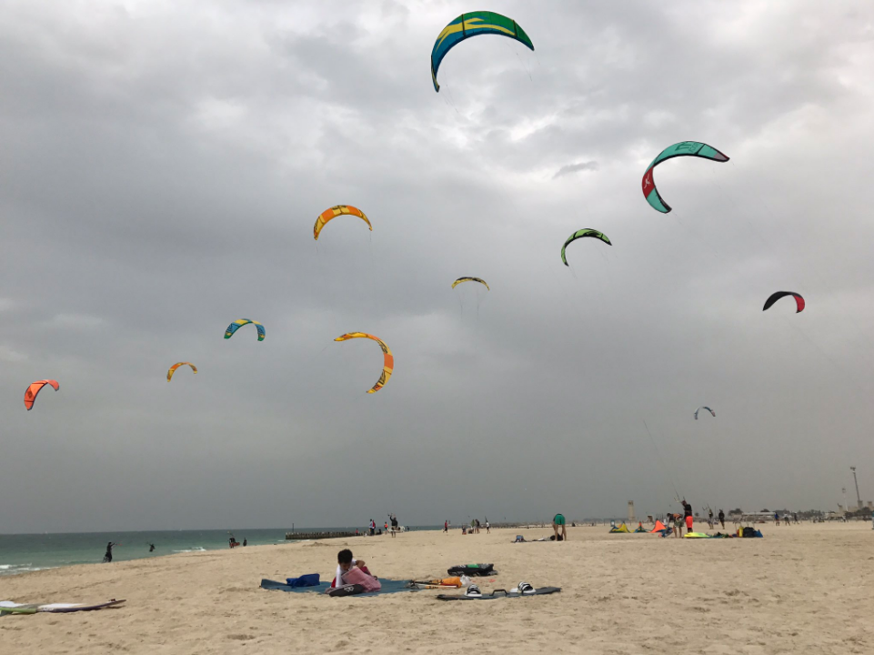 يقع شاطئ "كايت بيتش" أو شاطئ الطائرات الورقية في منطقة جميرا بدبي، ويشهد في نهاية كل أسبوع ازدحام شديد لكثرة العائلات والزوار والهواة الذين يتوافدون إليه لمتعة المنافسة في تحليق الطائرات الورقية أو لممارسة العديد من الألعاب المائية أو الاستمتاع بمشاهدة التزلج الشراعي على المياه.
