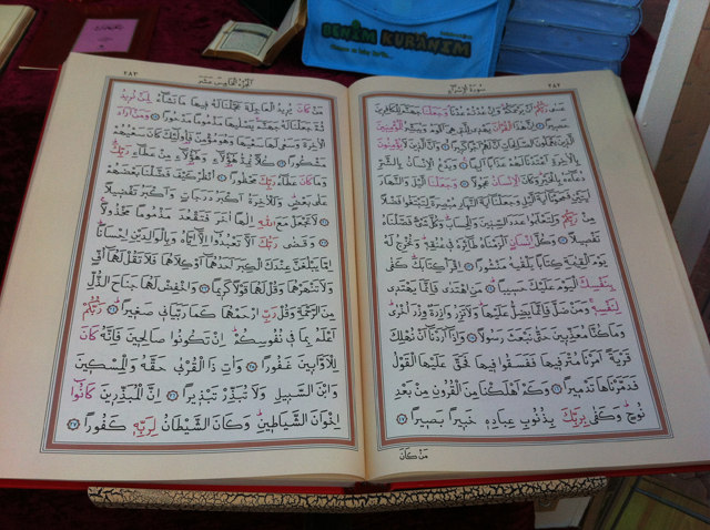 بين يدي مصحف بديع ، تصدره دار " الخيرات للنشر " التركية ، ويعرض حاليا في الجناح التركي بالقرية العالمية في دبي .