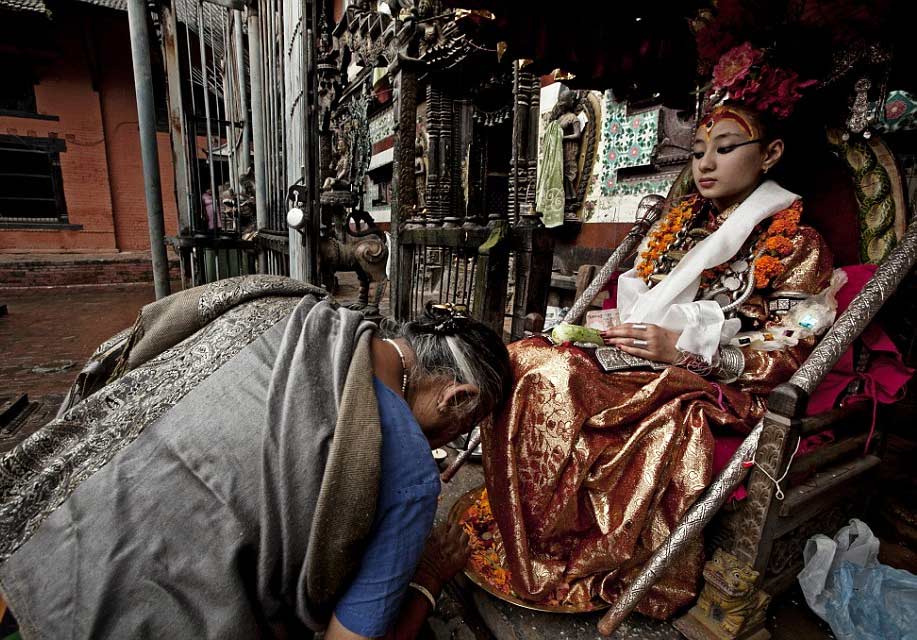 في معظم المجتمعات في جميع أنحاء العالم، تكون الآلهة رمزا روحياً، ولكن في نيبال، تكون الآلهة طفلة مقدسة تعيش وتتنفس، يطلق عليها اسم "كوماري" التي تعني العذراء في النيبالية، يتم اختيارها منذ الولادة لتمثيل وتجسيد آلهة القوة الهندوسية "كالي".