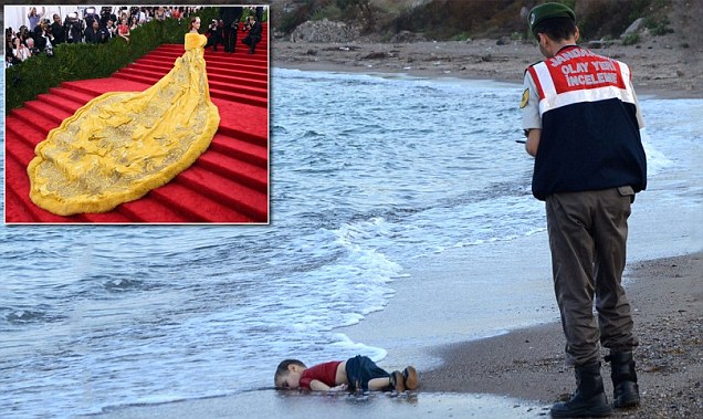 عام 2015 كان عاماً للمآسي ولكن الموضة كان لها نصيب منه، إذ حصد فستان ريحانة الضخم والذي ارتدته في حفل (Met Gala ) بنيويورك نصيبا كبيرا من التغطية الإعلامية عبر العالم، وهو من تصميم الصيني (جوو بي)