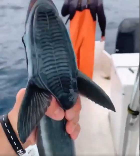نشر أحد الصيادين فيديو لسمكة غريبة تشبه مقدمتها نعال الأحذية لتلتصق بها مثل المغناطيس على الأسطح الحديدية وغيرها.