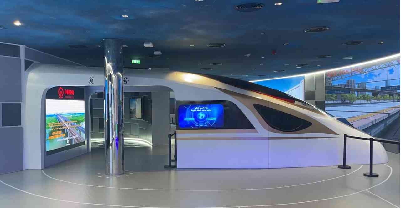 وتعرض الصين في جناحها آخر ما توصلت له في مجال السكك الحديدة والقطارات الفائقة السرعة التي تزيد سرعتها عن 300 كيلو متر في الساعة.
