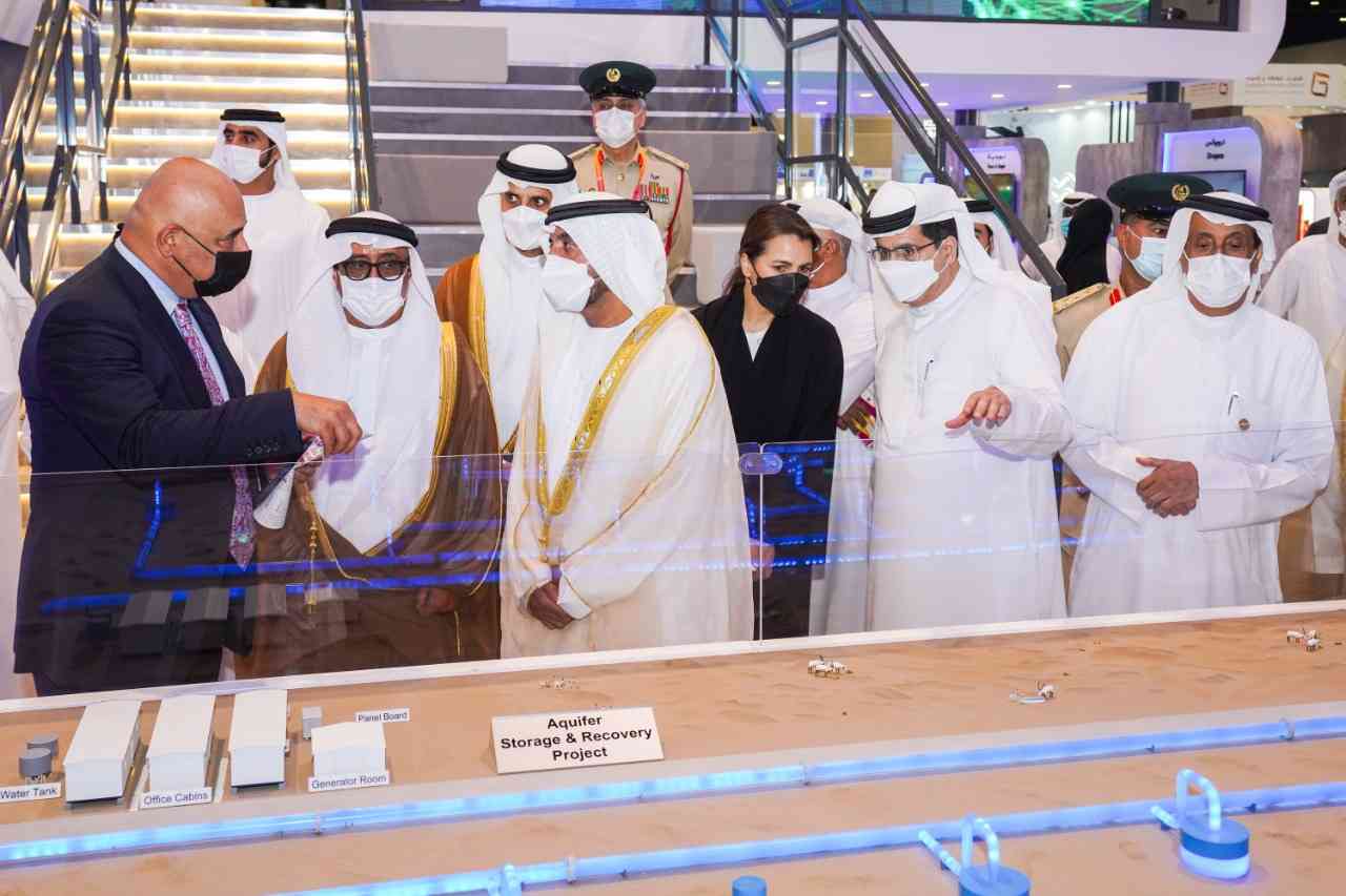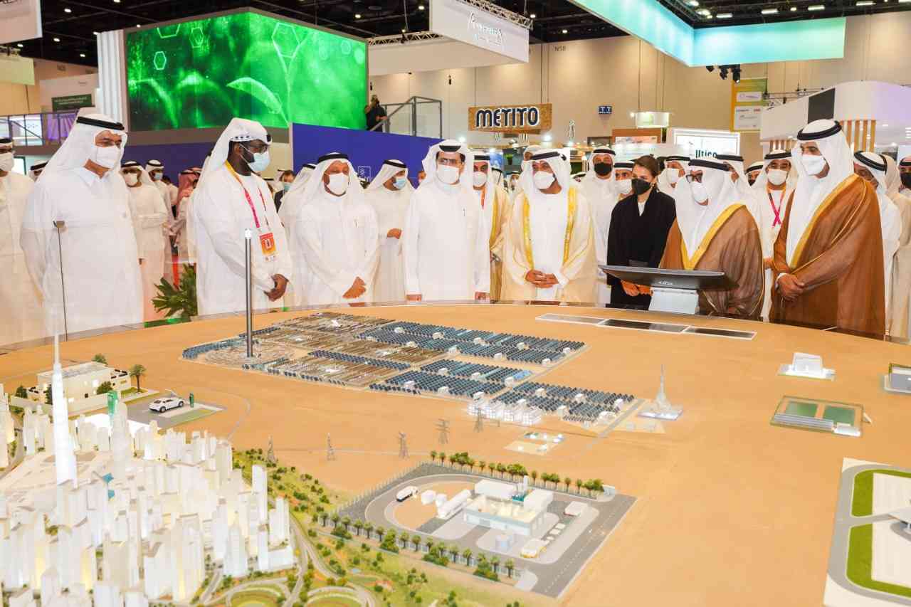 واستمع سمو الشيخ أحمد بن سعيد آل مكتوم إلى شرح عن أحدث التقنيات والابتكارات والمنتجات الجديدة في مجال الطاقة وتحلية المياه، والتقنيات الخضراء، وحلول الطاقة النظيفة والمتجددة، والاستدامة البيئية، والنفط، والغاز، وتقنيات الثورة الصناعية الرابعة والتحول الرقمي والذكاء الاصطناعي ومجالات البحوث والتطوير لإنتاج الطاقة النظيفة والمياه، وغيرها.