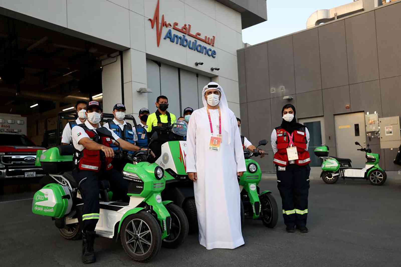 مؤسسة دبي لخدمات الإسعاف، نجحت في مواكبة رؤية المعرض المستقبلية، عبر تزويد طواقمها بأجهزة ومعدات متطورة، لتضمن تقديم أفضل الخدمات لزوار المعرض العالمي، حيث المسافة بين نقاط خدمات الإسعاف وأي نقطة أخرى في الموقع، لن يحتاج قطعها لأكثر من 5 دقائق، لا سيما بعد أن أدخلت المؤسسة "السكوتر" الكهربائي على خط الخدمة، من أجل تأمين الوصول إلى الحالات الطارئة بأسرع وقت ممكن.
