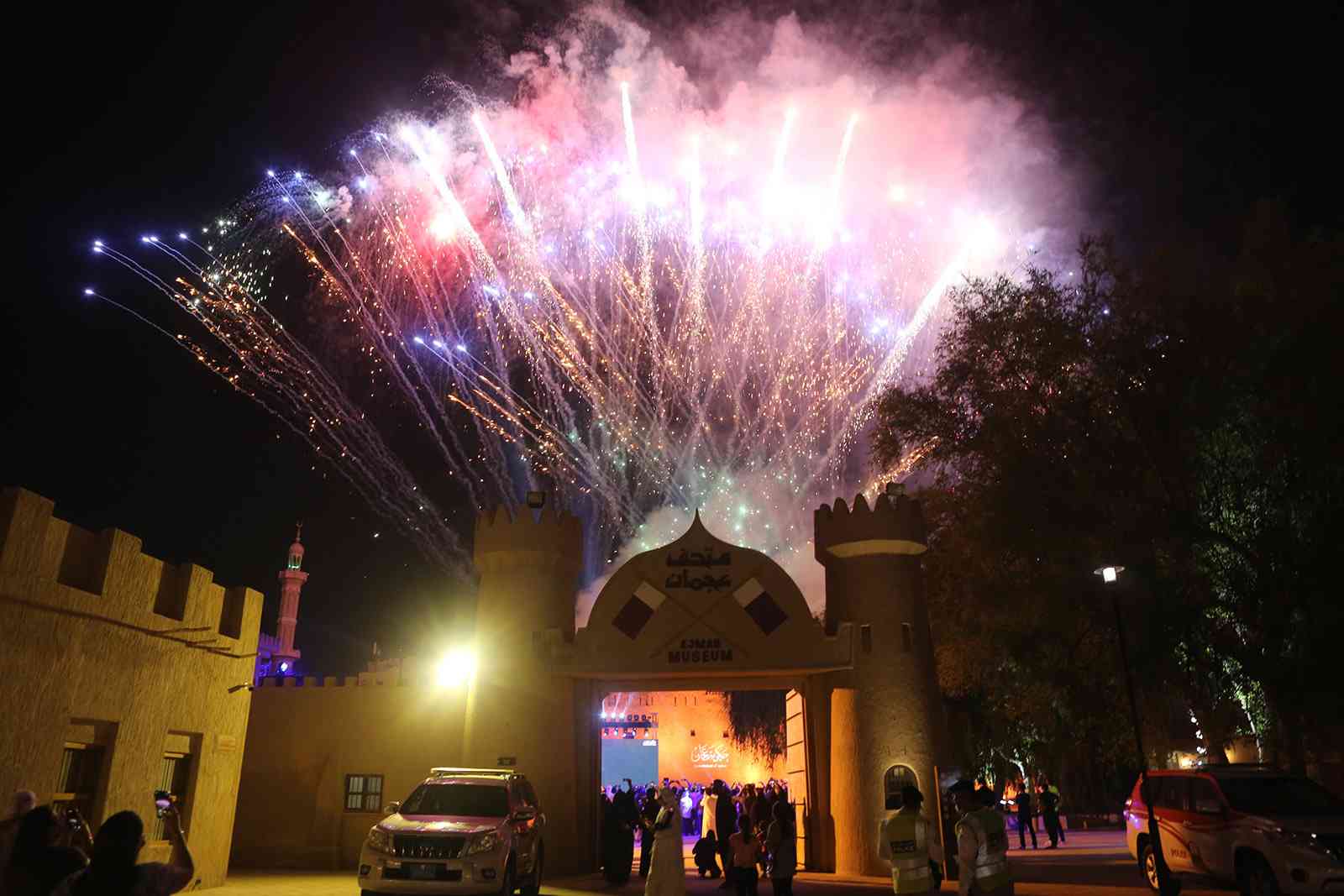 وتم إطلاق عروض الألعاب النارية في الإمارة بالتزامن مع بدء إطلاق المعرض في إمارة دبي. فيما تم بث الحفل الرسمي للافتتاح في منطقة كورنيش عجمان والتي تعد أهم المناطق الحيوية في الإمارة.