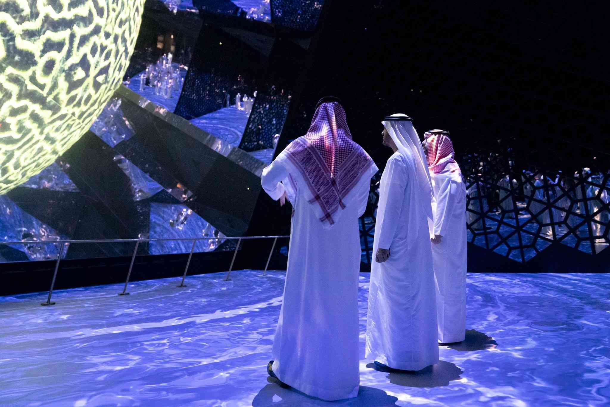 وتعرف سموه خلال جولة له في الجناح ـ الذي يعد ثاني أكبر جناح في معرض إكسبو 2020 دبي بمساحة تبلغ 13.059 متر مربع ويقع في منطقة الفرص - على رؤية المملكة الملهمة لمستقبل مشترك ومشاريعها الطموحة ضمن أربع ركائز رئيسية تشمل : المجتمع الحيوي والطبيعة والتراث والفرص الاستثمارية إضافة إلى ما يجسده الجناح من تاريخ المملكة العريق وما حباها الله من مناظر طبيعية متنوعة بجانب مساحات للطاقة والاستدامة.