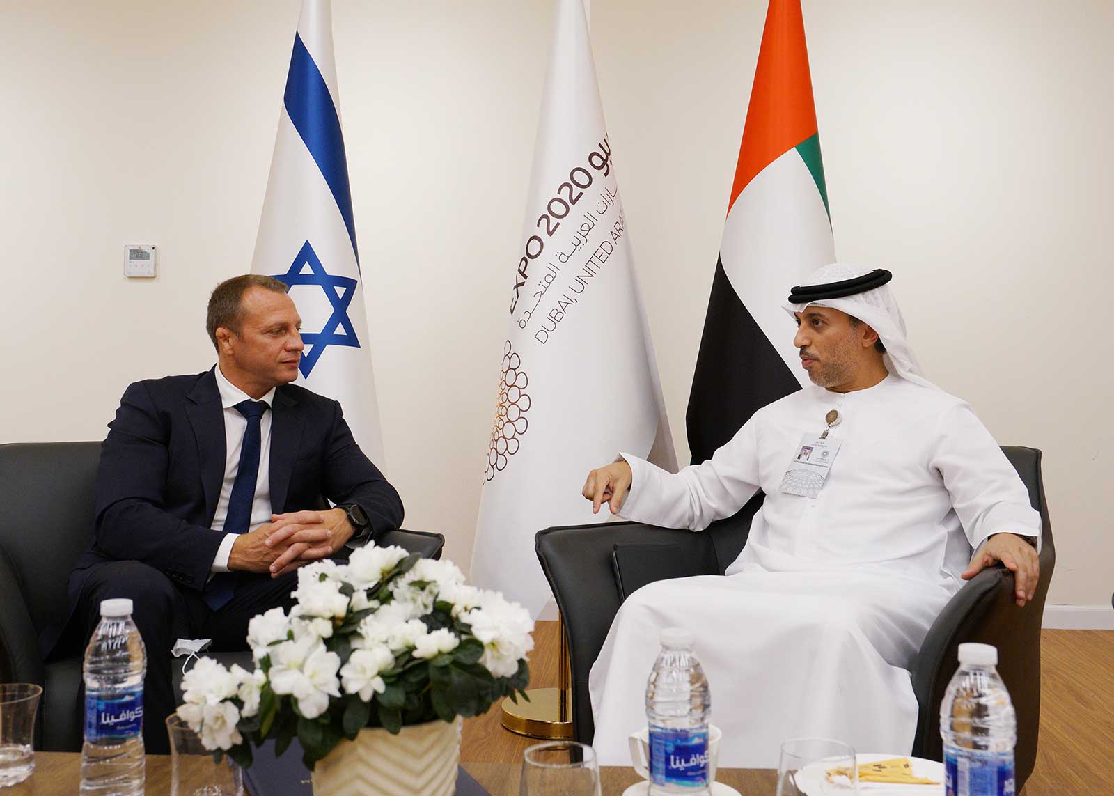 التقى معالي الدكتور أحمد بن عبد الله حميد بالهول الفلاسي وزير دولة لريادة الأعمال والمشاريع الصغيرة والمتوسطة رئيس مجلس الإمارات للسياحة معالي يوئيل رازفوزوف وزير السياحة الإسرائيلي على هامش افتتاح الجناح الاسرائيلي في إكسبو 2020 دبي.