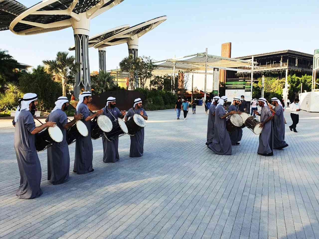 وعند البوابات الرئيسية، يستمتع زوار معرض «إكسبو 2020 دبي»، في أغلب أيام الأسبوع بفواصل من التراث الإماراتي الأصيل تقدمه فرقة الشحوح لفن الرواح والندبة بكل حرص، يقابله إقبال كبير من قبل زوار الحدث العالمي، ليرتسم مشهد غاية في الروعة والتناسق، فرقة تقدم فناً أصيلاً، وزوار يستمتعون بذلك الفن، يلتقطون صوراً تارة، وتارات يشاركون في الفعالية، تصفيقاً وحماساً.