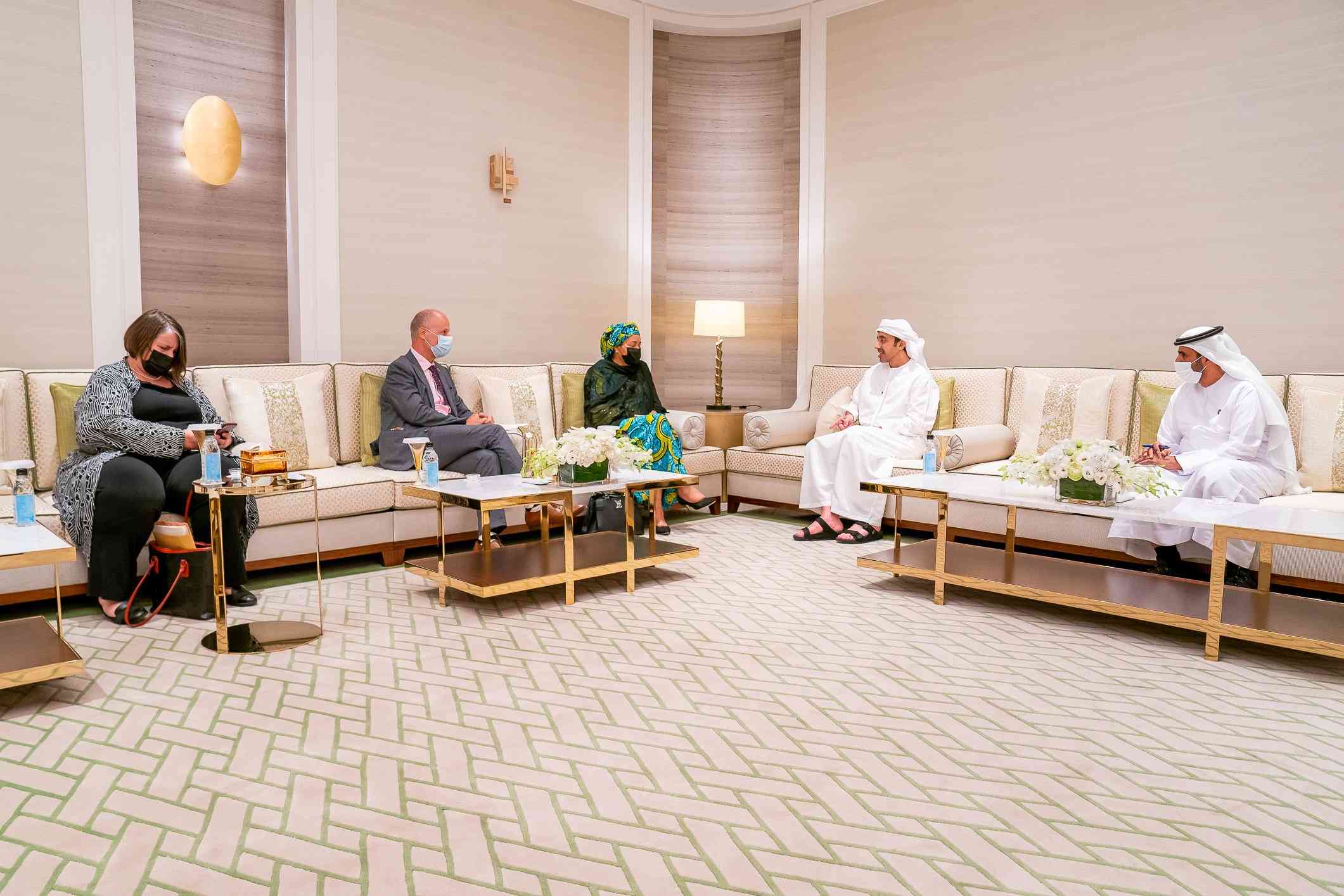 وبحث سموه ومعالي أمينة محمد المشاركة البارزة للأمم المتحدة في "إكسبو 2020 دبي " وأهميته في خلق شراكات دولية مثمرة وتبادل الخبرات والتجارب بين الدول ومواجهة التحديات الأكثر إلحاحا التي تواجه البشرية ودعم الجهود العالمية المبذولة من أجل تحقيق التنمية المستدامة في المجتمعات.