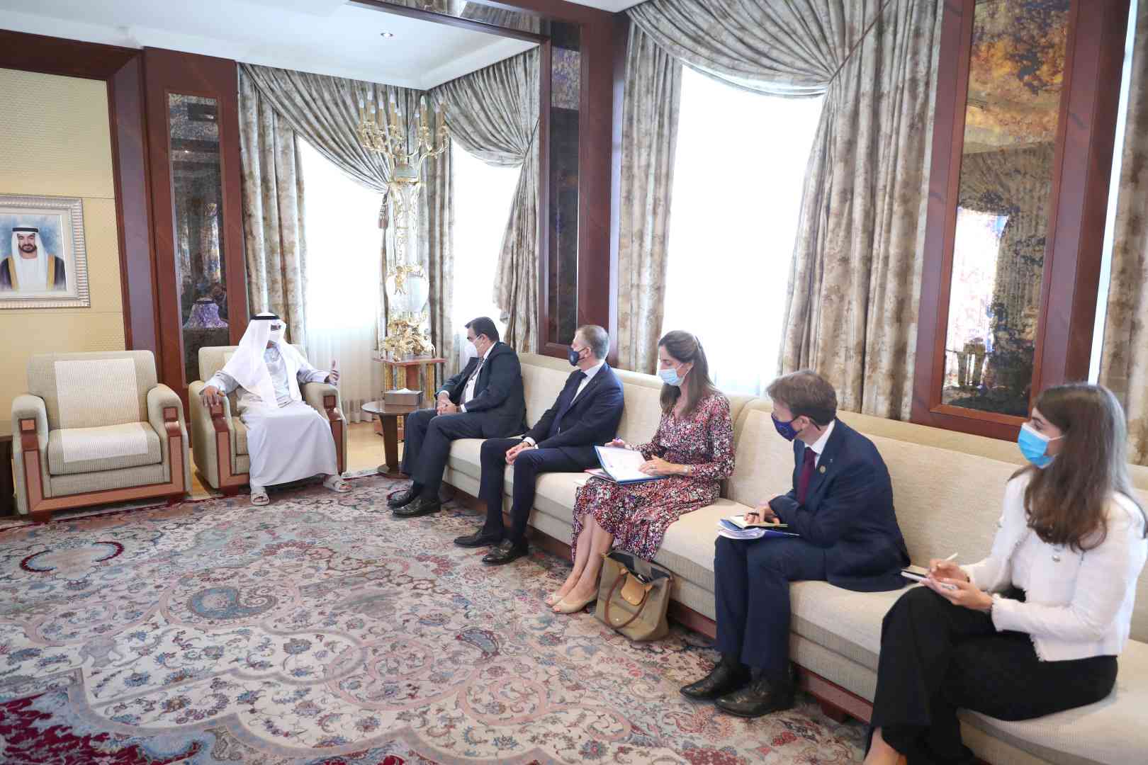 جاء ذلك خلال استقبال معاليه اليوم في قصره معالي مار غريتيس شيناس نائب رئيس المفوضية الأوروبية والمفوض عن تعزيز طريقة الحياة الأوروبية والذي يقوم بزيارة رسمية للدولة لتمثيل الاتحاد الأوروبي في "يوم الشرف" خلال إكسبو 2020 دبي.