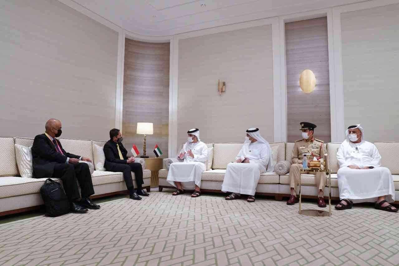 وتناول اللقاء، الذي حضره معالي عبدالله محمد البسطي، الأمين العام للمجلس التنفيذي لإمارة دبي، ومعالي الفريق عبدالله خليفة المري، القائد العام لشرطة دبي، ومعالي الفريق طلال حميد بالهول الفلاسي، مدير عام جهاز أمن الدولة في دبي، ومعالي مطر محمد الطاير، المدير العام ورئيس مجلس المديرين في هيئة الطرق والمواصلات في دبي، التنسيق المستمر بين دولة الإمارات وجمهورية سنغافورة في ضوء العلاقات المزدهرة بين الجانبين، كما تطرق النقاش إلى استعراض الجهود الدولية المبذولة في مجال مكافحة جائحة كوفيد-19 والتصدي لتبعاتها على مختلف الأصعدة الصحية والاقتصادية والاجتماعية، في ضوء تزايد أعداد المطعمين ضد الفيروس وأثر حملات التطعيم الواسعة حول العالم في التخفيف النسبي من الآثار الصحية للفيروس.