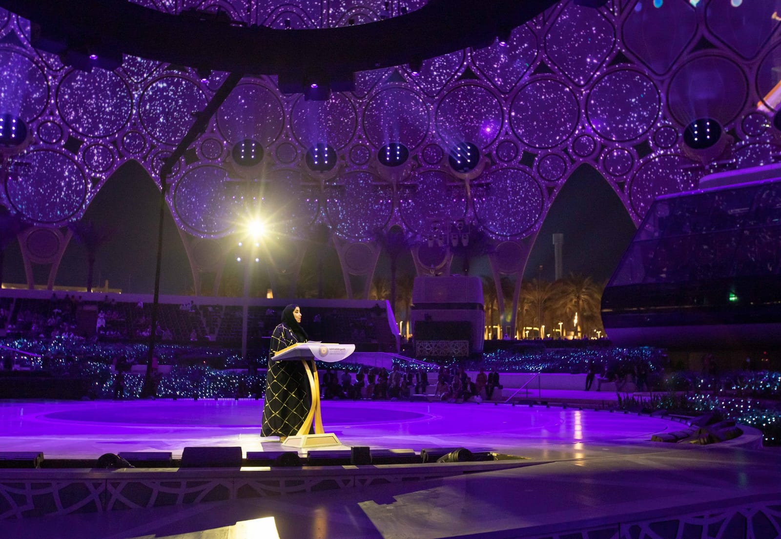 واستهلت منى غانم المري نائبة رئيسة مجلس الإمارات للتوازن بين الجنسين كلمتها خلال الاحتفال ببيتي شعر لصاحب السمو الشيخ محمد بن راشد آل مكتوم، نائب رئيس الدولة رئيس مجلس الوزراء حاكم دبي، رعاه الله، قائلةً: طــابـتِ الـوَصـلُ فـالـمدىَ أفــراحُ وهَــفَـتْ صَــوْبَ أرضـهـا الأرواح.. وكـذا الـوصلُ كـانَ إسـماً قـديماً لـــدبــيٍّ فــيــه الــعُــلا والــفــلاحُ"، مشيرةً إلى أن كلمة "الوصل" التي تقترن بها الساحة التي تحتضن جناح المرأة في إكسبو 2020 كان اسم دبي في الماضي، وأن هذا التجمع اليوم هو انعكاس حقيقي لمعنى التواصل والكيفية التي تربط العالم بدبي لمكانتها وشراكاتها العالمية المتميزة.