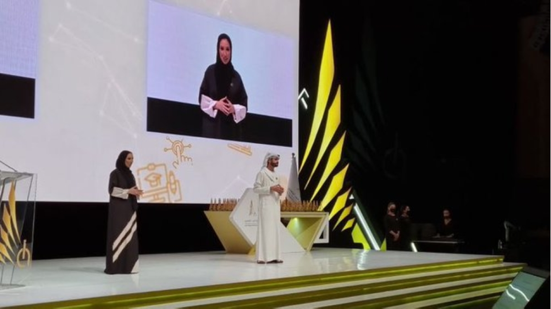 بارك سمو الشيخ هزاع بن زايد آل نهيان نائب رئيس المجلس التنفيذي لإمارة أبوظبي، للفائزين بجوائز الأداء المتميز من طلبة ومعلمين ومدارس في حفل «جائزة ألف للتعليم» الذي أقيم في «إكسبو2020 دبي».