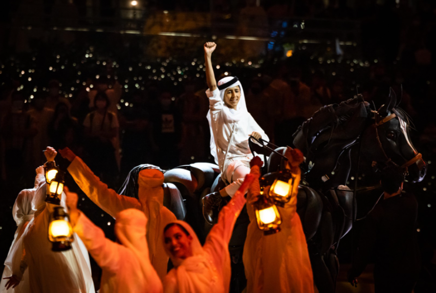 حضر صاحب السمو الشيخ محمد بن راشد آل مكتوم، نائب رئيس الدولة رئيس مجلس الوزراء حاكم دبي، رعاه الله، عرضاً مسرحياً بعنوان "العاديات.. الفتى والخيل" أُقيم في "ساحة الوصل" في إكسبو 2020 دبي.