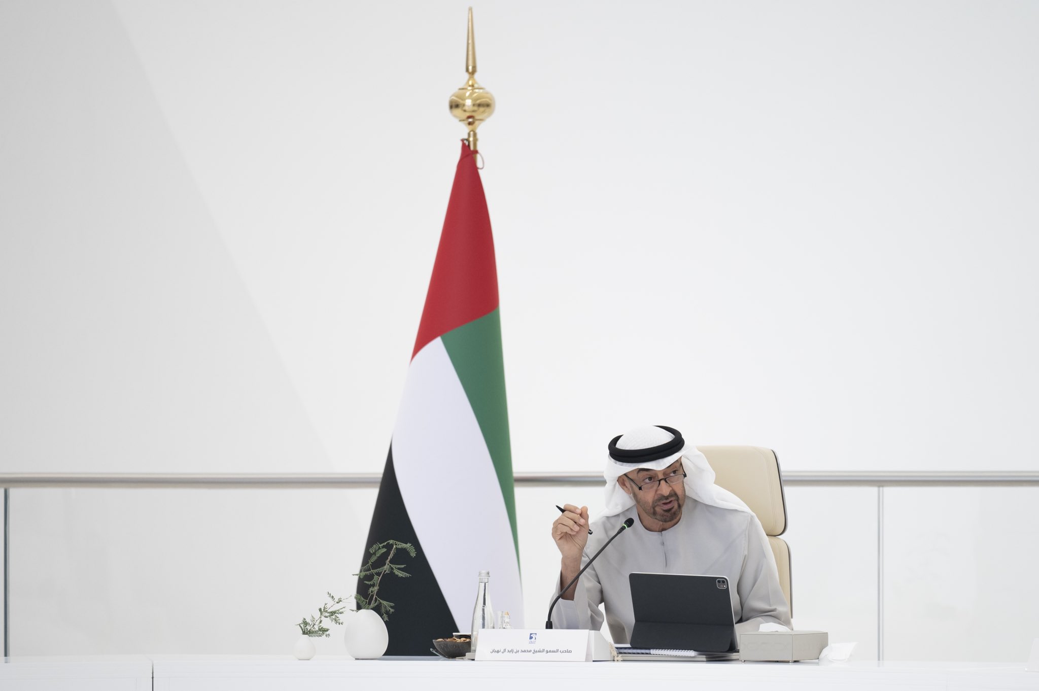 حضر الاجتماع.. سمو الشيخ هزاع بن زايد آل نهيان نائب رئيس المجلس التنفيذي لإمارة أبوظبي وسمو الشيخ منصور بن زايد آل نهيان نائب رئيس مجلس الوزراء وزير شؤون الرئاسة وسمو الشيخ خالد بن محمد بن زايد آل نهيان عضو المجلس التنفيذي لإمارة أبوظبي رئيس مكتب أبوظبي التنفيذي وسمو الشيخ ذياب بن محمد بن زايد آل نهيان رئيس ديوان ولي عهد أبوظبي ومعالي سهيل محمد المزروعي وزير الطاقة والبنية التحتية ومعالي الدكتور سلطان أحمد الجابر وزير الصناعة والتكنولوجيا المتقدمة، العضو المنتدب والرئيس التنفيذي لأدنوك ومعالي أحمد علي الصايغ وزير دولة ومعالي الدكتور أحمد مبارك المزروعي عضو المجلس التنفيذي رئيس مكتب رئيس المجلس التنفيذي لإمارة أبو ظبي ومعالي خلدون خليفة المبارك العضو المنتدب والرئيس التنفيذي لشركة مبادلة للاستثمار ومعالي جاسم محمد بوعتابة الزعابي عضو المجلس التنفيذي رئيس دائرة المالية في أبوظبي ومعالي عويضة مرشد المرر عضو المجلس التنفيذي رئيس دائرة الطاقة في أبوظبي.