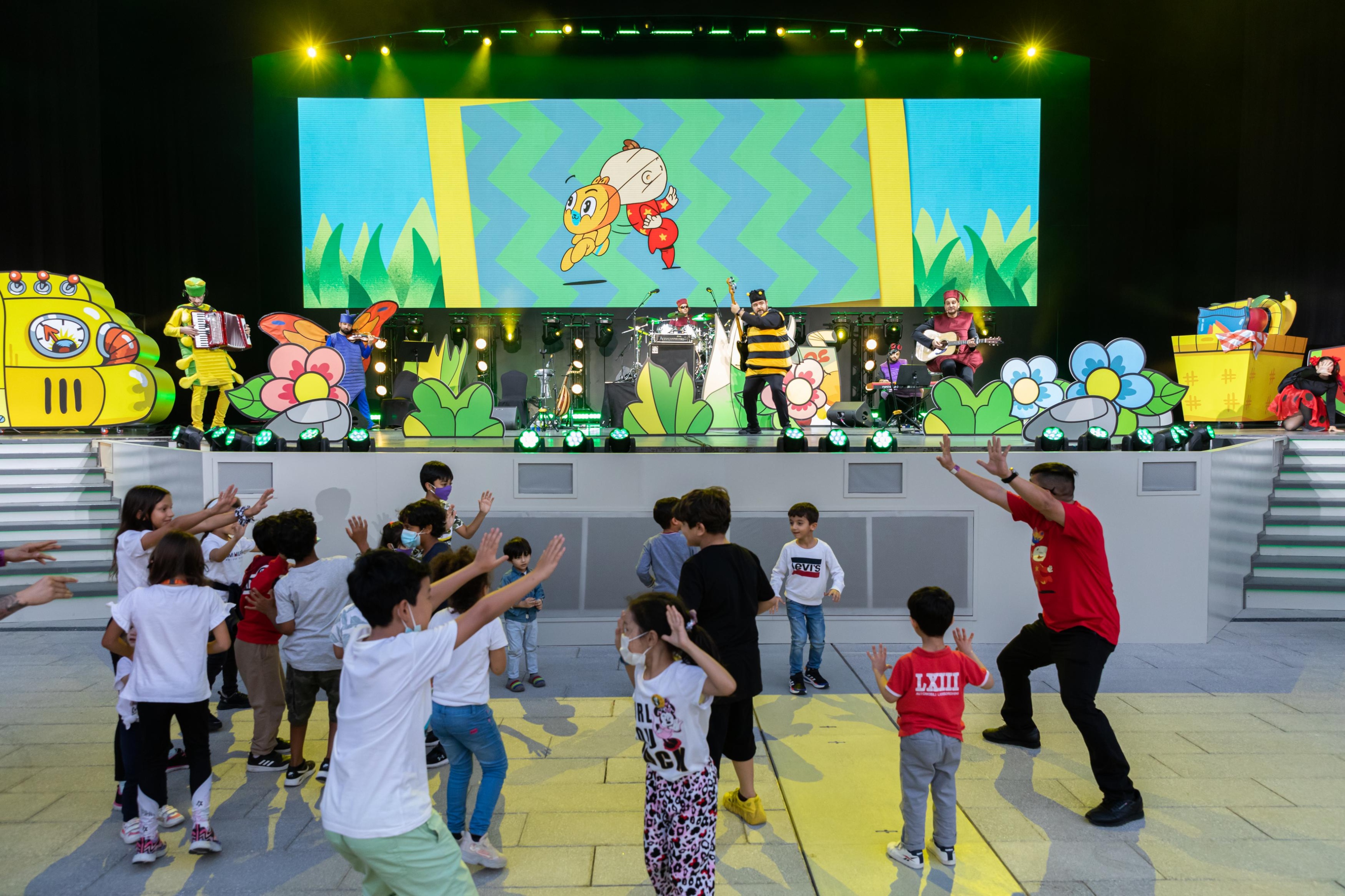 احتفل مسرح دبي ميلينيوم في إكسبو 2020 دبي بالأطفال، يوم أمس الأحد، ضمن حدث ترفيهي تعليمي قدمه فريق العمل الكرتون المعروف "آدم ومشمش"، حيث رقص الصغار مع ذويهم على أنغام مجموعة من الموسيقيين في هذه الفعالية الخاصة بتعليم اللغة العربية.