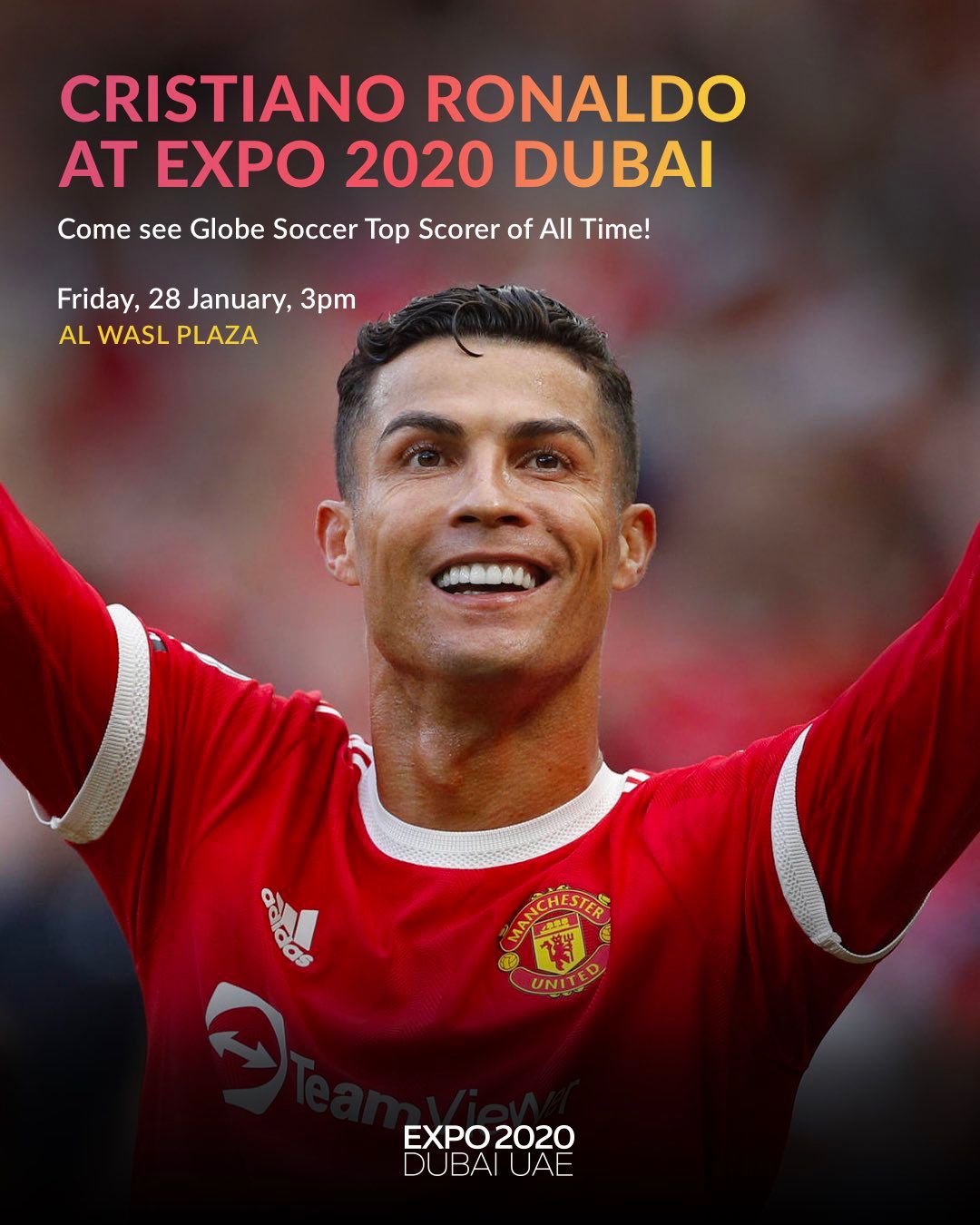 أعلنت شونا ماكغي نائب رئيس الاتصال في إكسبو 2020 دبي خلال الإحاطة الإعلامية الدورية للحدث أن نجم كرة القدم العالمي كريستيانو رونالد سيزور إكسبو 2020 دبي غداً، وأوضحت أن الإعلان عن تفاصيل الزيارة سيتم لاحقاً اليوم حال اكتمال برنامج الزيارة.