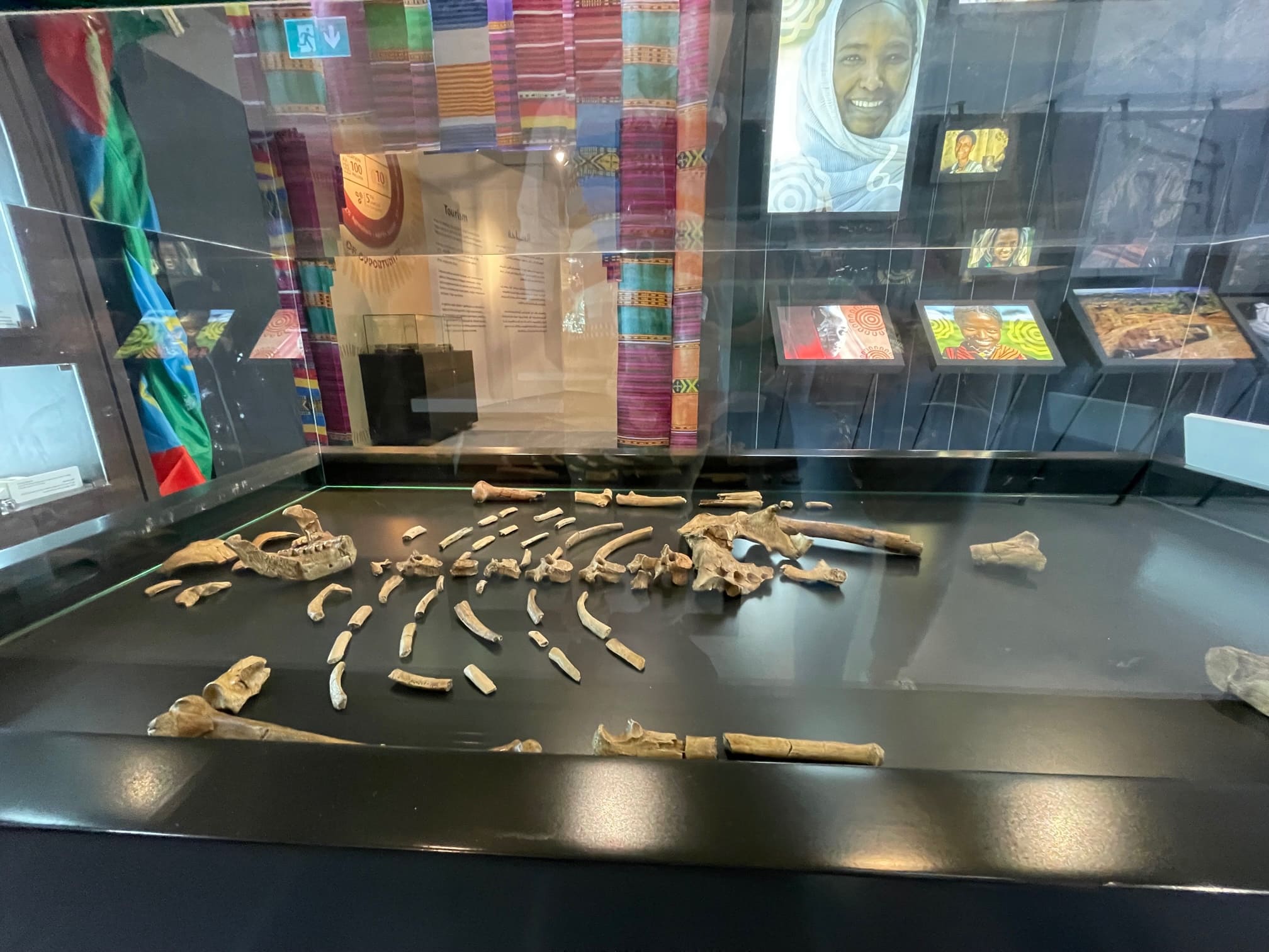 الجناح الإثيوبي به 40% من هيكل عظمي للحفرية لوسي المعروفة، والذي تم اكتشافه في هادار بإثيوبيا في 24 نوفمبر 1974؛ ووفقا لناشونال جيوغرافيك، فإن عمر لوسي يبلغ حوالي 3.2 مليون سنة وكان ارتفاعها 3.5 قدم فقط، وكان لديها ذراعان قويّان وأصابع طويلة منحنية يعتقد علماء الأحافير أنها سمحت لها بتسلق الأشجار.