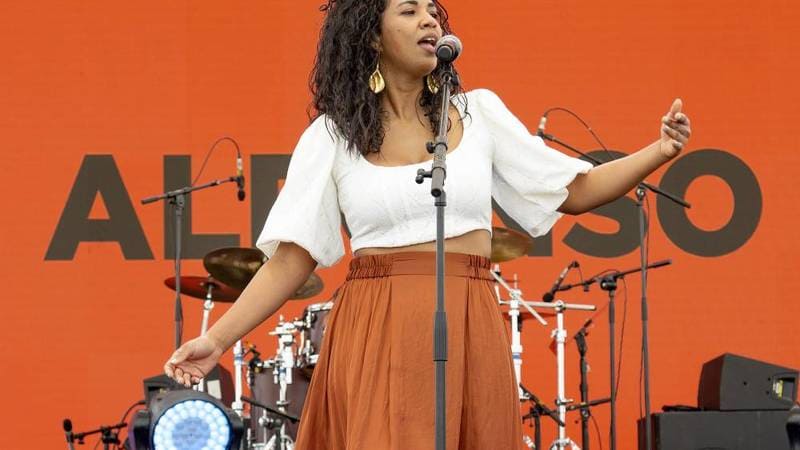 ثم قدمت الفنانة الكوبية، إيمي ألفونسو، أجمل أغنياتها باللغة الاسبانية، وتفاعل الجمهور مع أغنياتها والموسيقى الصاخبة المرافقة لأدائها الاستعراضي على خشبة المسرح. وتماهى أداؤها مع أنغام عازفي الإيقاع والغيتار والبيانو. وأعربت عن سعادتها بالمشاركة في مهرجان نحن النساء، ودعمها لجميع النساء في العالم ليعشن في سلام.
