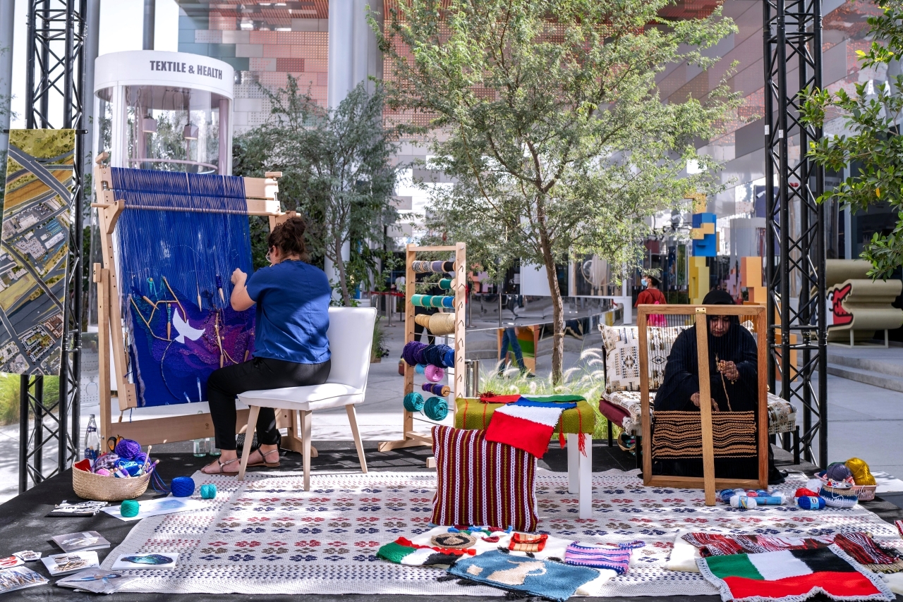 أسهم معرض «بيديها» المنعقد في إكسبو 2020 دبي في المزج بين الثقافتين الإماراتية والفرنسية من خلال حياكة علمي البلدين في «سدو» واحد بمشاركة مجموعة من النساء الإماراتيات اللاتي يمارسن فن حياكة السدو، وهو شكل من أشكال النسيج التقليدي في الإمارات.