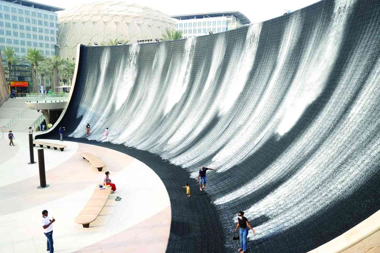 ومن جانب آخر حظيت الحقائق التقنية والفنية لتكوين الشلالات التي يشرحها ويتناول تفاصيلها المشرفون عليها، باهتمام الجمهور الذي جلس طويلاً تحت زخات المياه المتساقطة، والتي منحت الأجواء انتعاشاً إضافياً يواكب الحماس والمتعة التي حظيت بها فعاليات المعرض العالمي، حيث تتراوح الموجات الفردية، وعددها 153 موجة، من صفائح متلألئة إلى رشقات مياه تثب حرفياً من الجدران أثناء هبوطها الدرامي إلى الساحة أسفل منها.