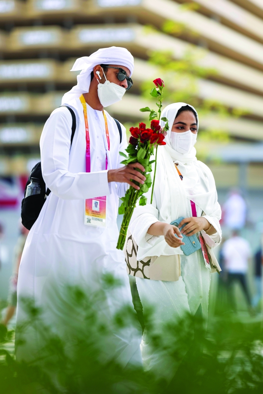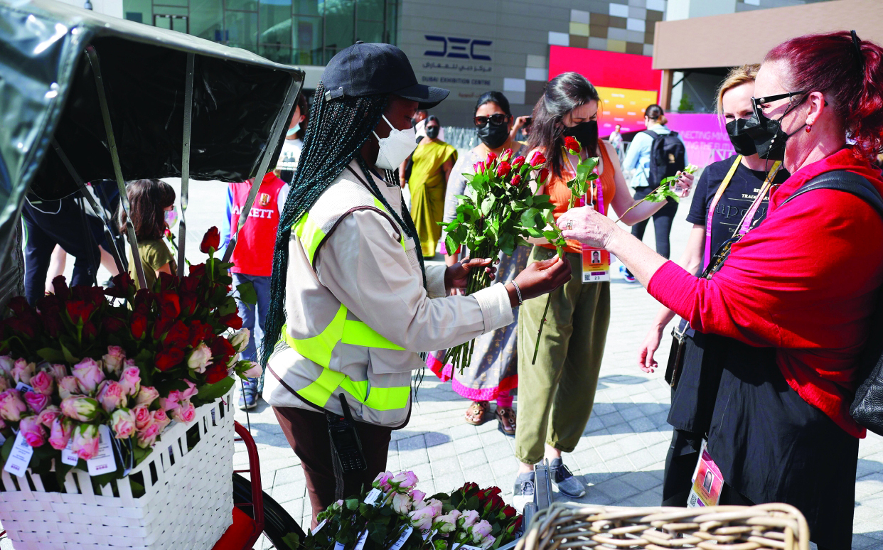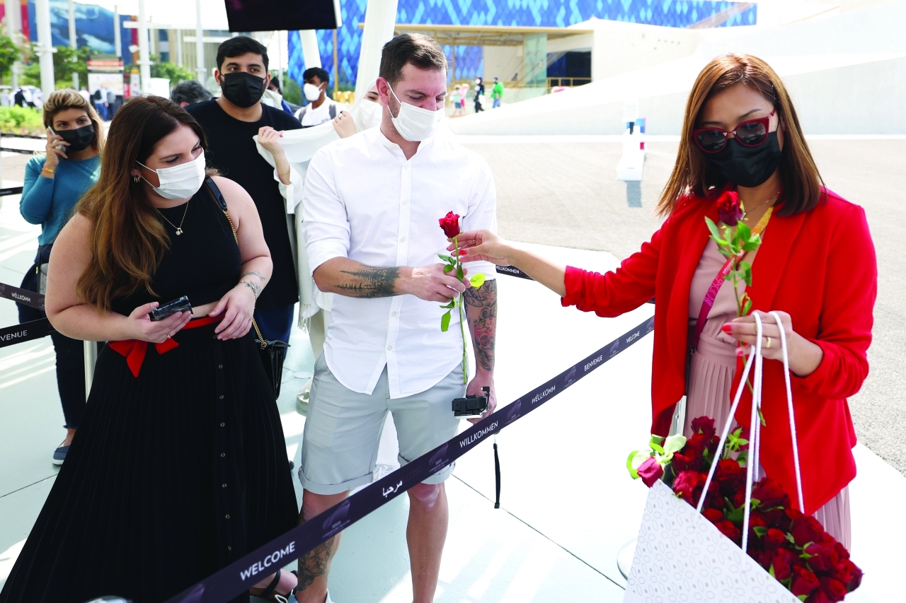 احتفى إكسبو 2020 دبي، بإحياء مناسبة عيد الحب، حيث شهدت أروقة الحدث العالمي يوماً حافلاً بالورود التي زينت مداخل أجنحة الدول المشاركة في الترويج للمناسبة، وتم تخصيص منصات أمام الأجنحة للاحتفاء بـ«الفالنتاين». واصطف الزوار لتلقي الورود في أروقة الحدث العالمي وسط أجواء تفاعلية بالتقاط الصور وتبادل الهدايا.