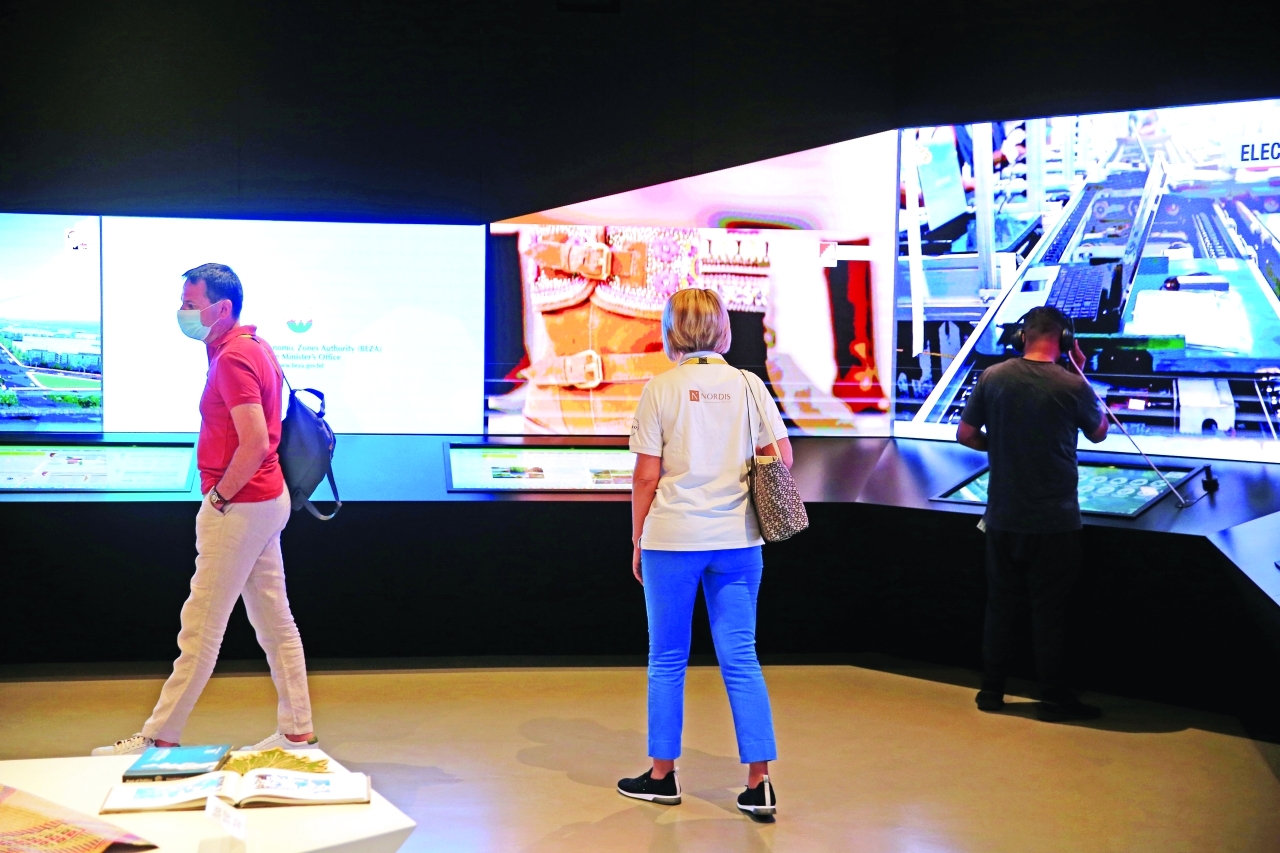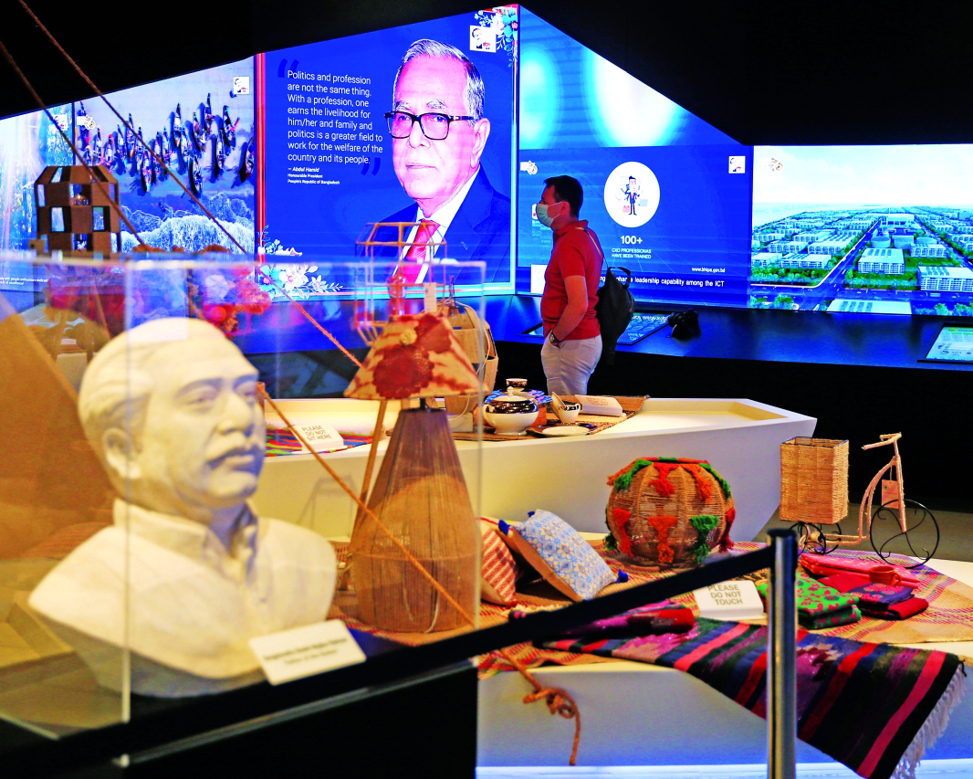 ويقدم الجناح نظرة بانورامية على بنغلاديش المعاصرة، لاكتشاف التحول والتمكين، ورحلة تطور الدولة، التي كان اقتصادها يعتمد قديماً على الزراعة، إلا أن هذه الدولة، أصبحت اليوم مركزاً رائداً للابتكار والتصنيع، إذ تُعد حالياً موطناً رئيساً لصناعة الملابس والسلع الاستهلاكية.