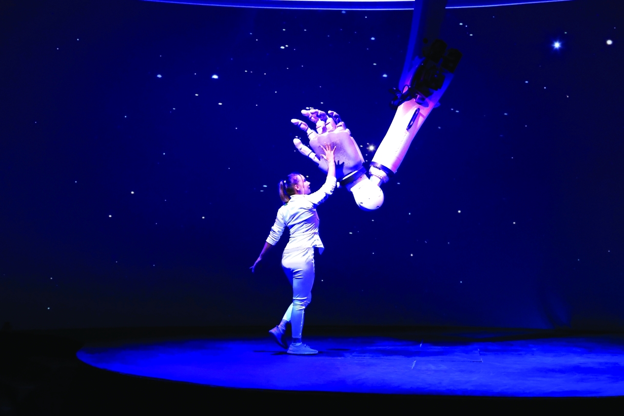 كازاخستان يد تقبض التفاح وثانية تلامس الفضاء