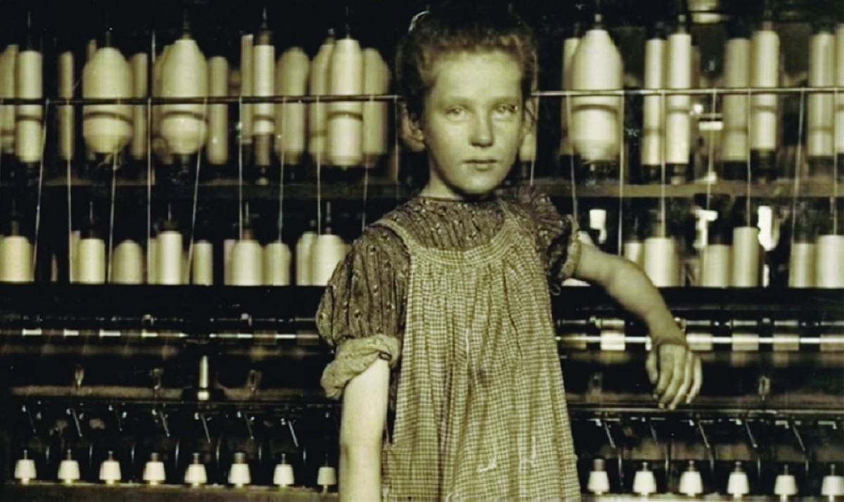 في عام 1910، تسلل المصور لويس هاين إلى مصنع قطن في ولاية فيرمونت بالولايات المتحدة، والتقط صورة لفتاة تقف أمام آلة غزل، وكتب أسفل الصورة: «غزّالة صغيرة هزيلة». كانت الفتاة تبلغ من العمر 12 عاماً، وتعمل 12 ساعة يومياً بأجر زهيد، بالكاد يكفيها لتوفير قوتها.