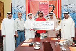 وبحضور عبدالله الحوسني نائب المدير العام لشركة السالم المحدودة وهي الشركة المالكة لمركز الساحل للأسهم وعبدالله سالم عبدالله نجل مالك الشركة واحد نواب المدير العام والمحترف البرازيلي روجر واحمد محمود الحوسني المعلق الرياضي بقناة أبوظبي الرياضية وزهير السومة مدير نادي عجمان.