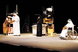 موضحاً أن اللجنة طلبت منه اختصار العمل إلى ثلاثين دقيقة، بعد أن كانت مدته ساعة ونصف الساعة. وحول دلالة وجود المرأة الحامل والرجل المقعد في المسرحية قال إن هاتين الشخصيتين موجودتان في الحياة العملية في المجتمع الإماراتي الذي يحرص على إشراك كافة الفئات الاجتماعية في ميادين العمل الحكومي والخاص.