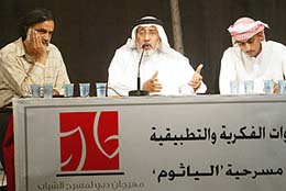 شارك في الندوة التطبيقية كل من الفنان أحمد الجسمي،والمسرحي العراقي محمود أبو العباس،ومخرج ومعد العمل محمد الحمادي. النقاشات في الندوة لم تكن كعادتها بل كانت مقتضبة.أدار الندوة الفنان أحمد الجسمي مبديا إعجابه بالعمل المقدم مركزاً على وجود الممثل الملفت في «الياثوم»، وتوقف الجسمي عند الإضاءة والديكور المستخدمين على خشبة المسرح وأهمية توظيفهما على هذه الصورة. كما نوه بالأداء المميز لكل من الممثل أحمد مال الله، والممثلة عوشة مبارك.