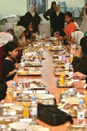 وعلى موائد الرحمن التي تنظمها وزارة الأوقاف، إضافة إلى عدد من الجمعيات والمحسنين يجتمع عدد كبير من الصائمين من مختلف الطبقات، حيث أصبحت هذه الموائد تقليداً تشهده عمان طوال أيام الشهر الفضيل، في حين أن الأردنيين يحتفظون على الدوام بمجموعة متنوعة من الأكلات التي لا تجهلها المائدة الرمضانية في كل بيت، لعل أبرزها «المقلوبة»، و«المنسف» و«الدجاج المسخن» و«المفتول» و«المحاشي» وغيرها الكثير من الأطباق التقليدية.