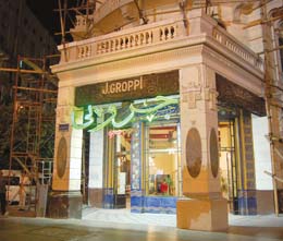 وفي وسط ميدان طلعت حرب بالقاهرة لافتة ضخمة أصبحت معلما تاريخيا تعلن عن مقهى شهير ومعروف وهو مقهى «جروبي» فالسائحون العرب والأجانب الذين زاروا مصر أو حتى الذين يعيشون فيها كلهم يعرفون «جروبي».وجروبي يعد من أقدم مقاهي مصر وتطور أداؤ؟ه مع الزمن رغم أنه تأسس منذ قرابة التسعين عامًا وبجانب تقديمه المشروبات الساخنة والباردة ولكنه يعد الأشهر في مجال الحلوى والأيس كريم في مصر كلها، وهو المقهى الوحيد الذي ارتبط فيه تقديم القهوة والشاي بالجاتوه، حيث يعتبره المؤرخون أكبر من مجرد مقهى عادي ولكنه تاريخ عريق وطويل في مجال الفن والفكر والسياسة.
